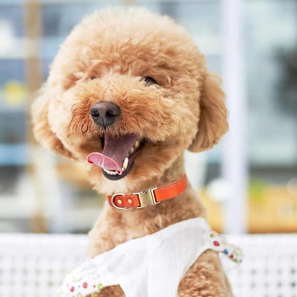 犬 首輪 革 犬の首輪 柔らかい 調節可能 小型犬 中型犬 大型犬 犬用品 おしゃれ 通気性 かわいい (赤 M)