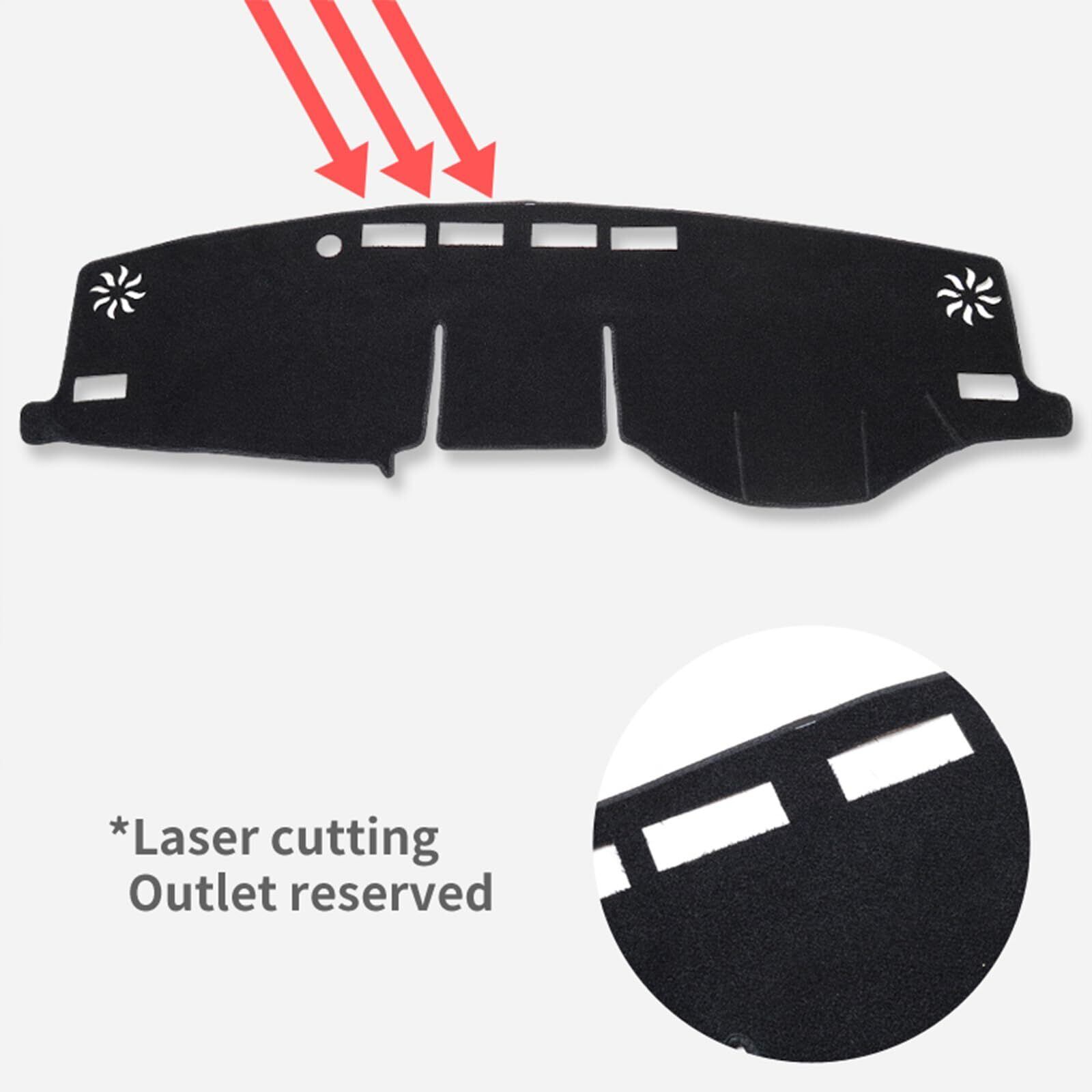 2.【優れた素材】:ポリエステル+シリコン粒子(裏面)。豊かな質感があります。また、優れた耐熱性と耐久性をもっており、ダッシュボードを紫外線から守り、亀裂、変色しにくいです。黒い色が違和感なくオリジナルダッシュボードにぴったりします。
