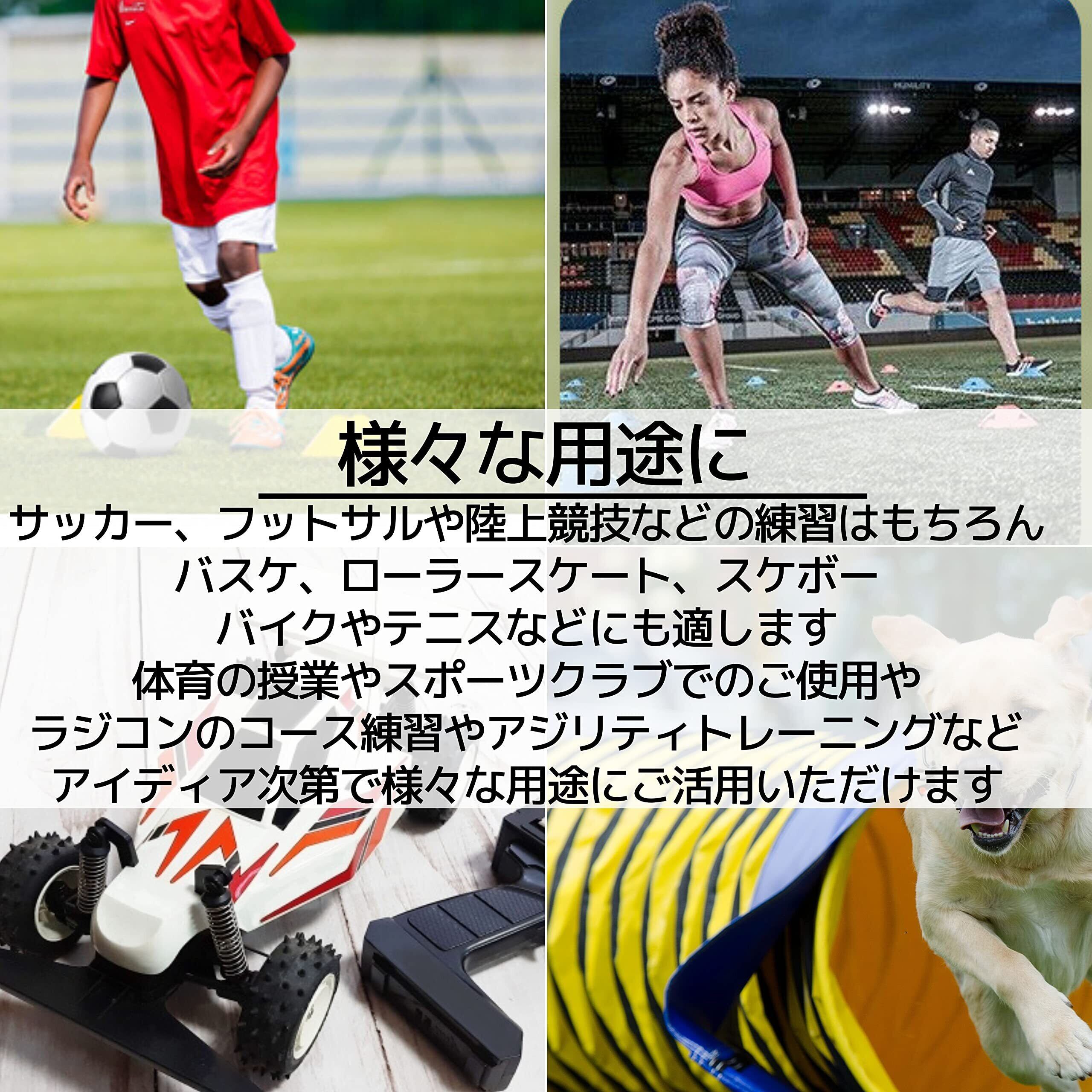【様々な用途に】サッカー、フットサルや陸上競技などの練習はもちろん、バスケ、ローラースケート、スケボー、バイクやテニスなどにも適します。 体育の授業やスポーツクラブでのご使用やラジコンのコース練習やアジリティトレーニングなどアイディア次第で様々な用途にご活用いただけます。
