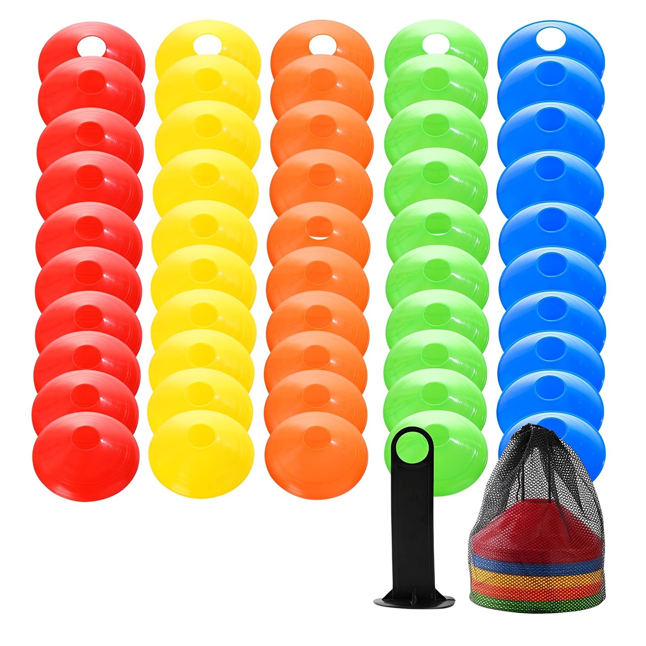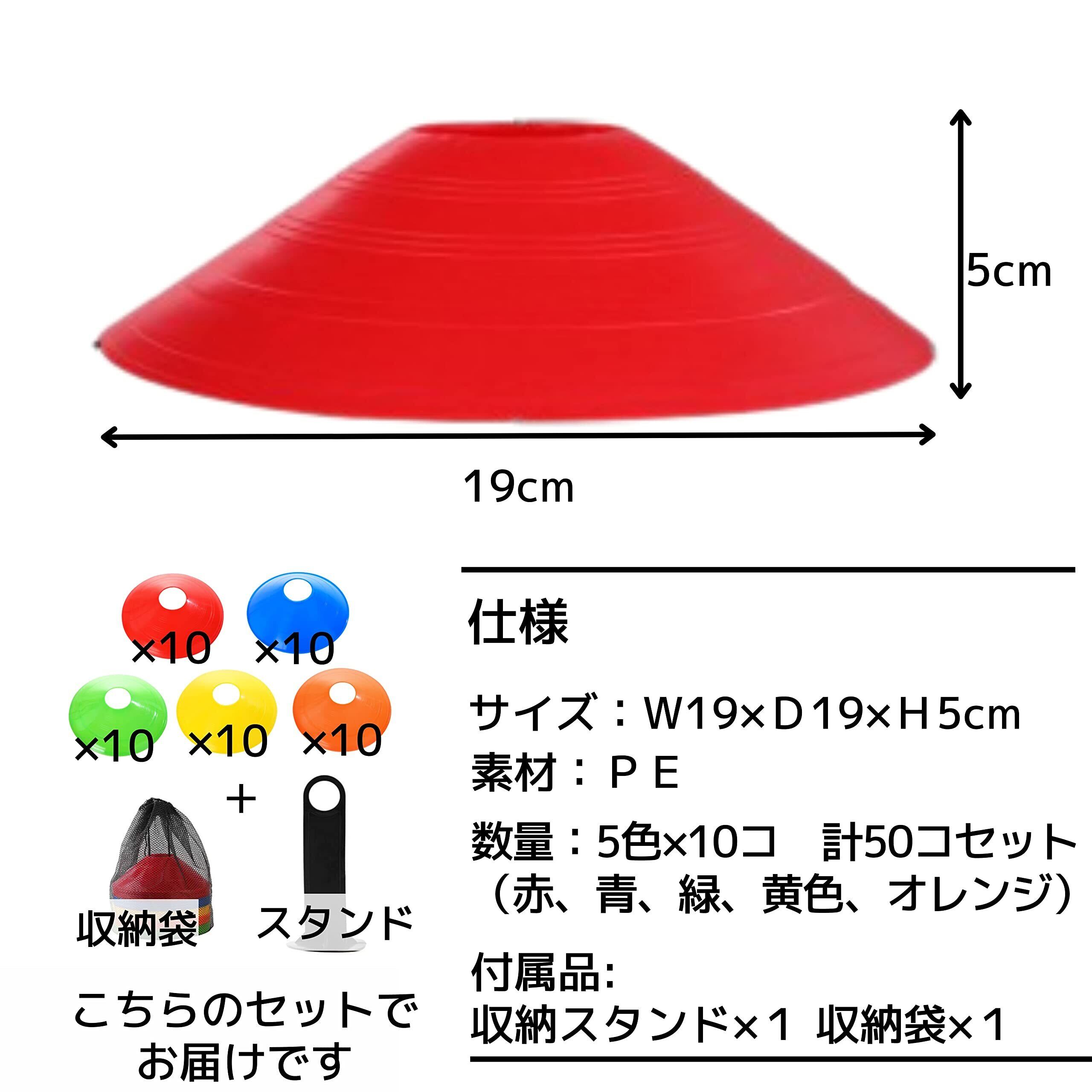 East Leaf マーカーコーン カラーコーン サッカー バスケ フットサル スポーツ トレーニング ラック 収納袋付 (50個(5色x10個))