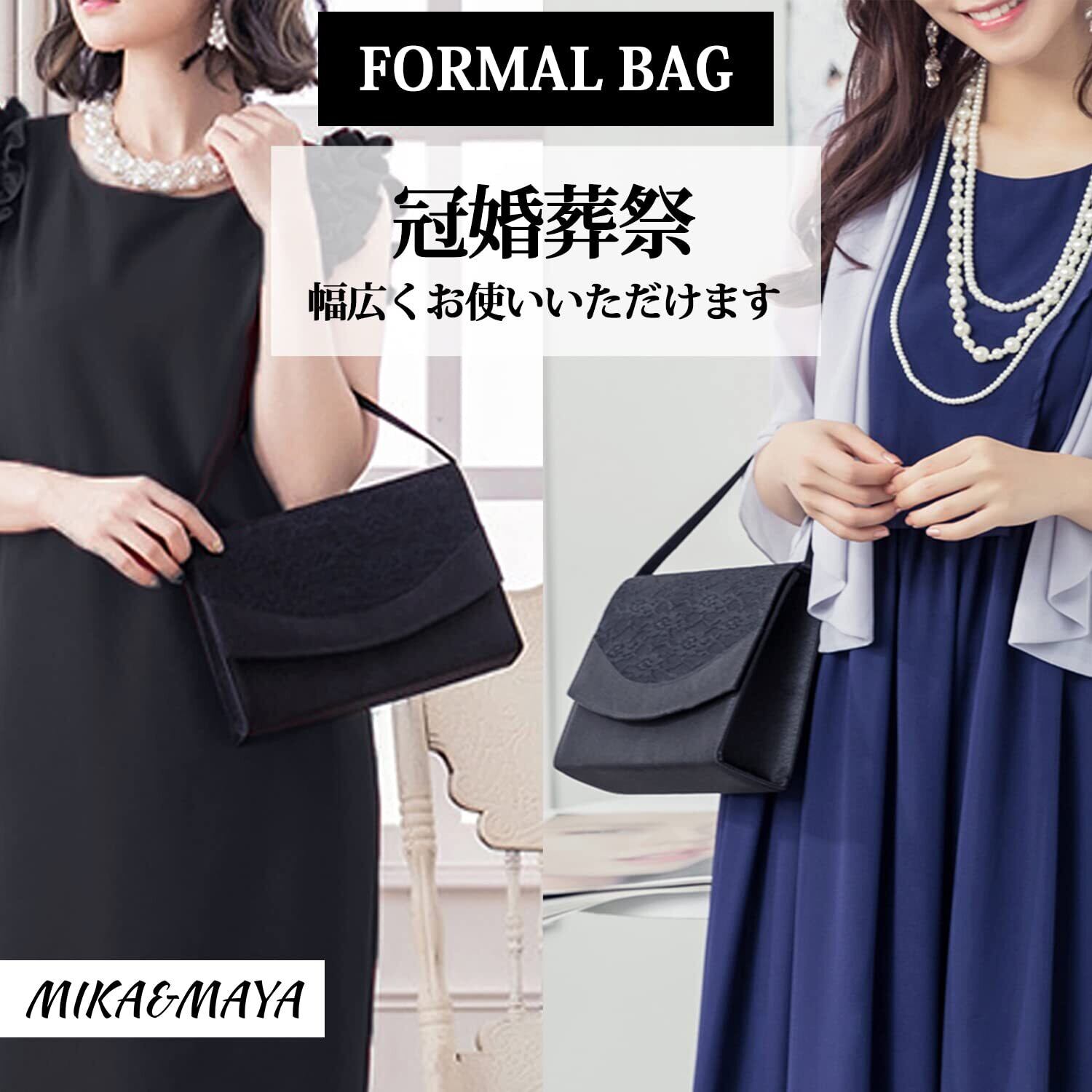 [MIKA&MAYA] フォーマル バッグ 黒 葬儀 結婚式 レディース 冠婚葬祭 入学式 卒業式 葬式 ブラック 大容量 (2ハンドル)