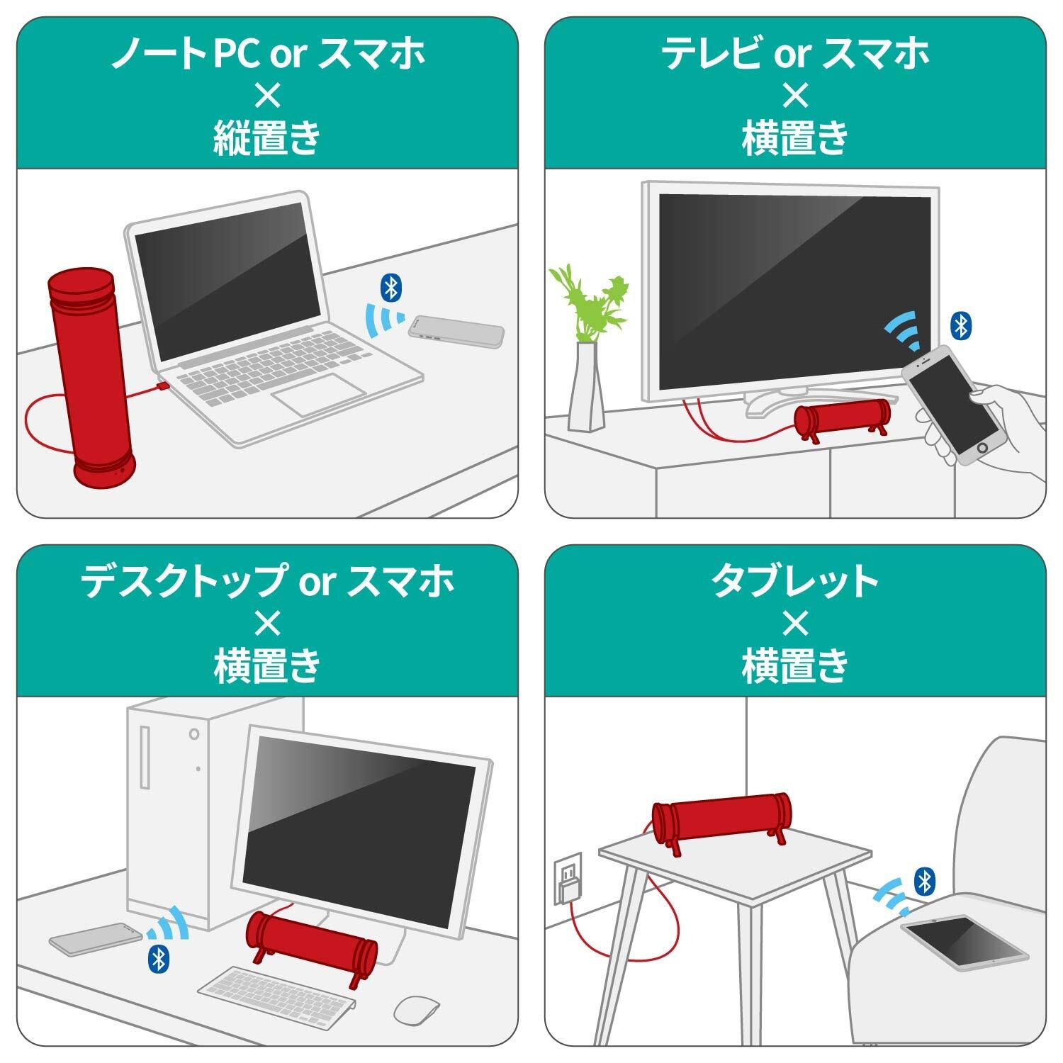 音楽再生は有線(ステレオミニプラグ)接続とBluetooth(R)接続の両対応で、パソコンとスマートフォンなど複数の機器からの再生が可能です。※有線とBluetooth(R)の同時再生はできません。
