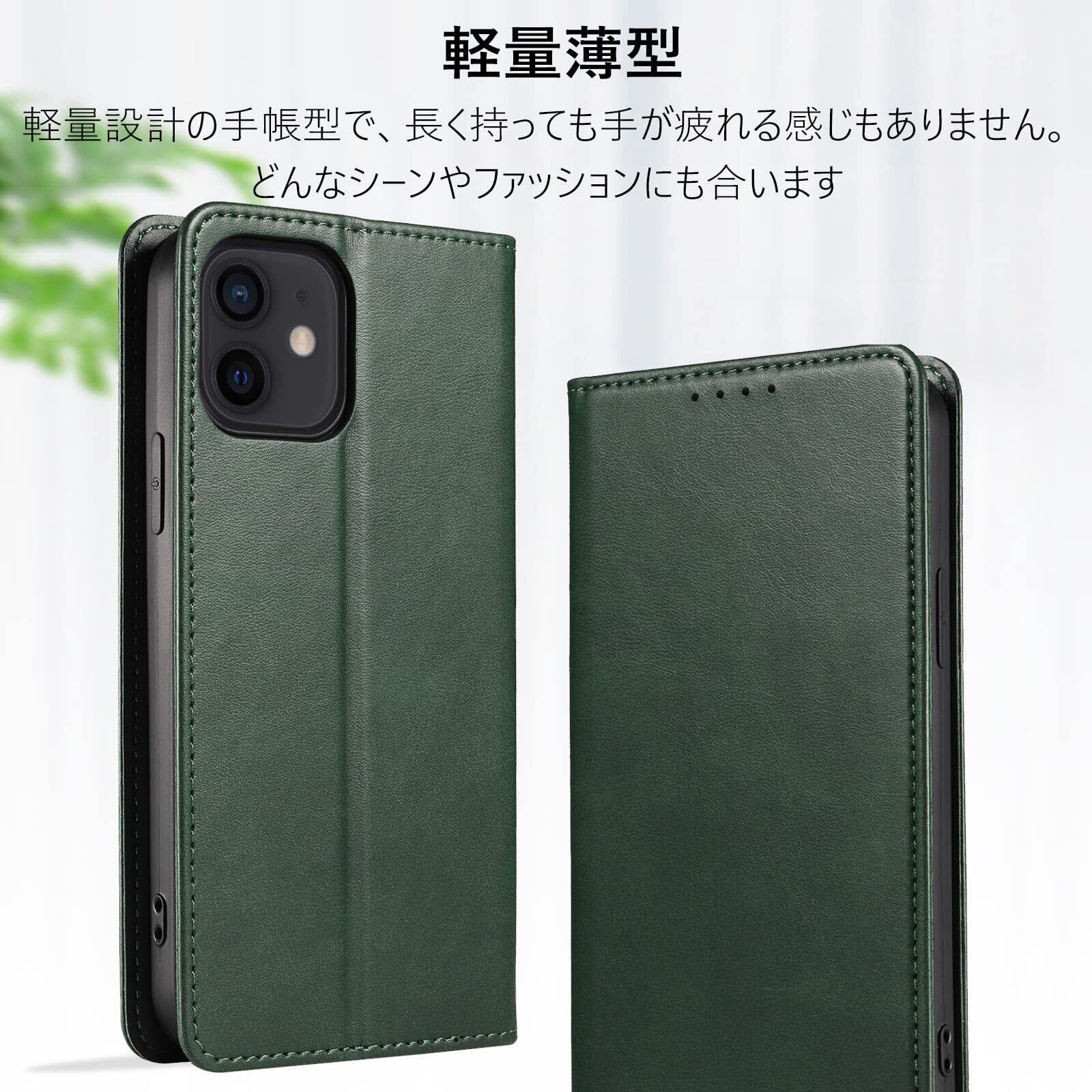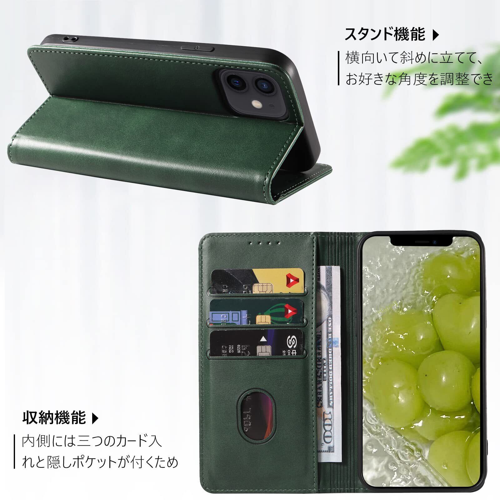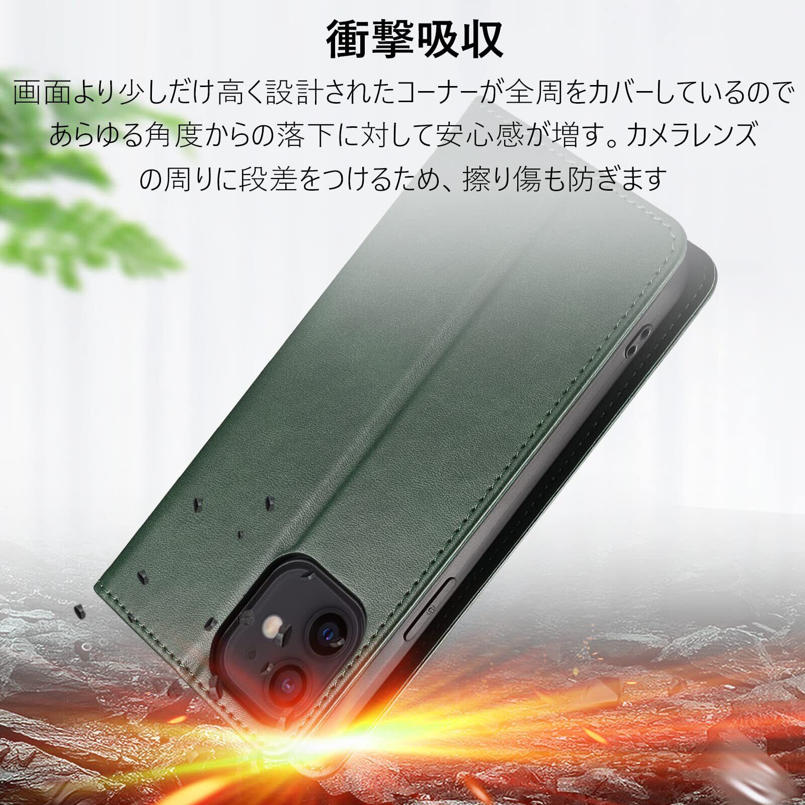 【KWATUNG】iphone12 ケース 手帳型 iphone12pro ケース 手帳型 レザー iphone12 手帳型ケース 軽量 放熱性 iphone 12 ケース 手帳型 薄型 マグネット式 スマホケース iphone12 手帳型 カード収納 スタンド機能 アイフォン 12 カバー 手帳 型 衝撃吸収 落ち着いた色 iphone12pro 手帳型ケース【グリーン】