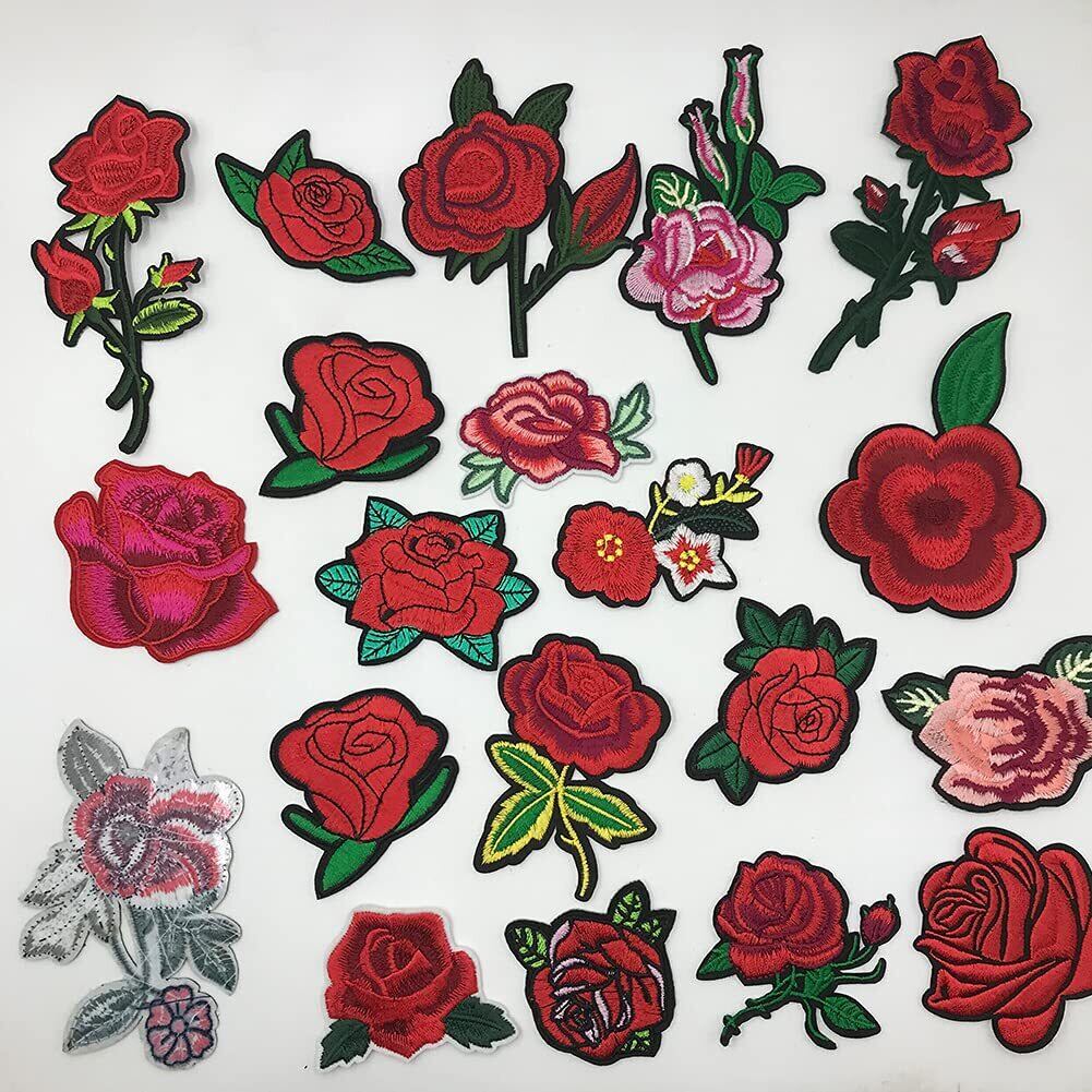TIANYING 花 ワッペン アイロン 刺繡 ローズ アップリケ バラ レッド アイロンワッペン 大きいサイズ パッチ補修ワッペンセット 20枚入 (ワッペン花 20枚セット)