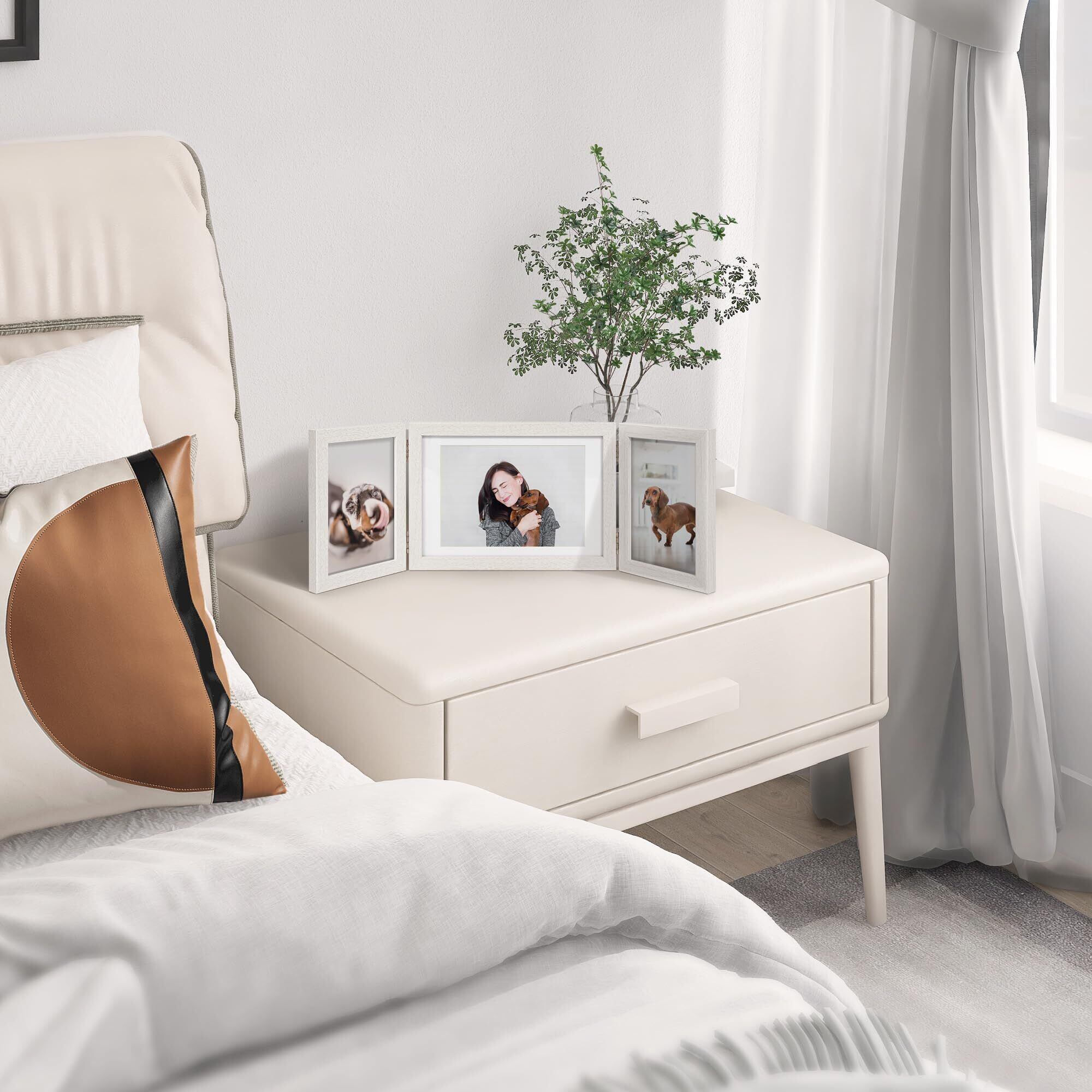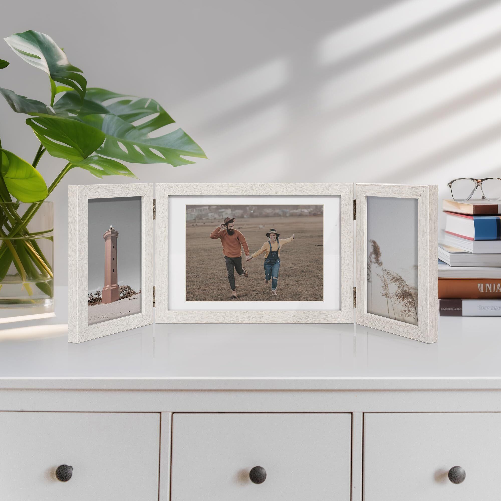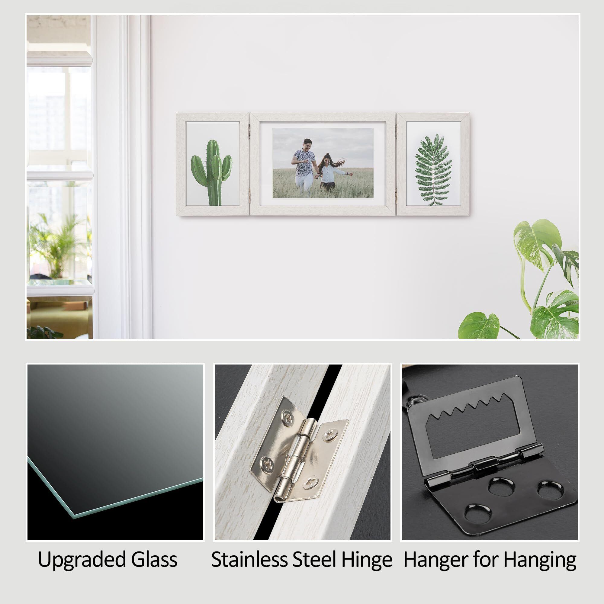 Afuly フォトフレーム はがき 2L判 3面 写真立て おしゃれ 壁掛け シンプル 白 折りたたみ式 デザインフォトフレーム 結婚祝い 誕生日 記念日 プレゼント バレンタイン 装飾 プレゼント