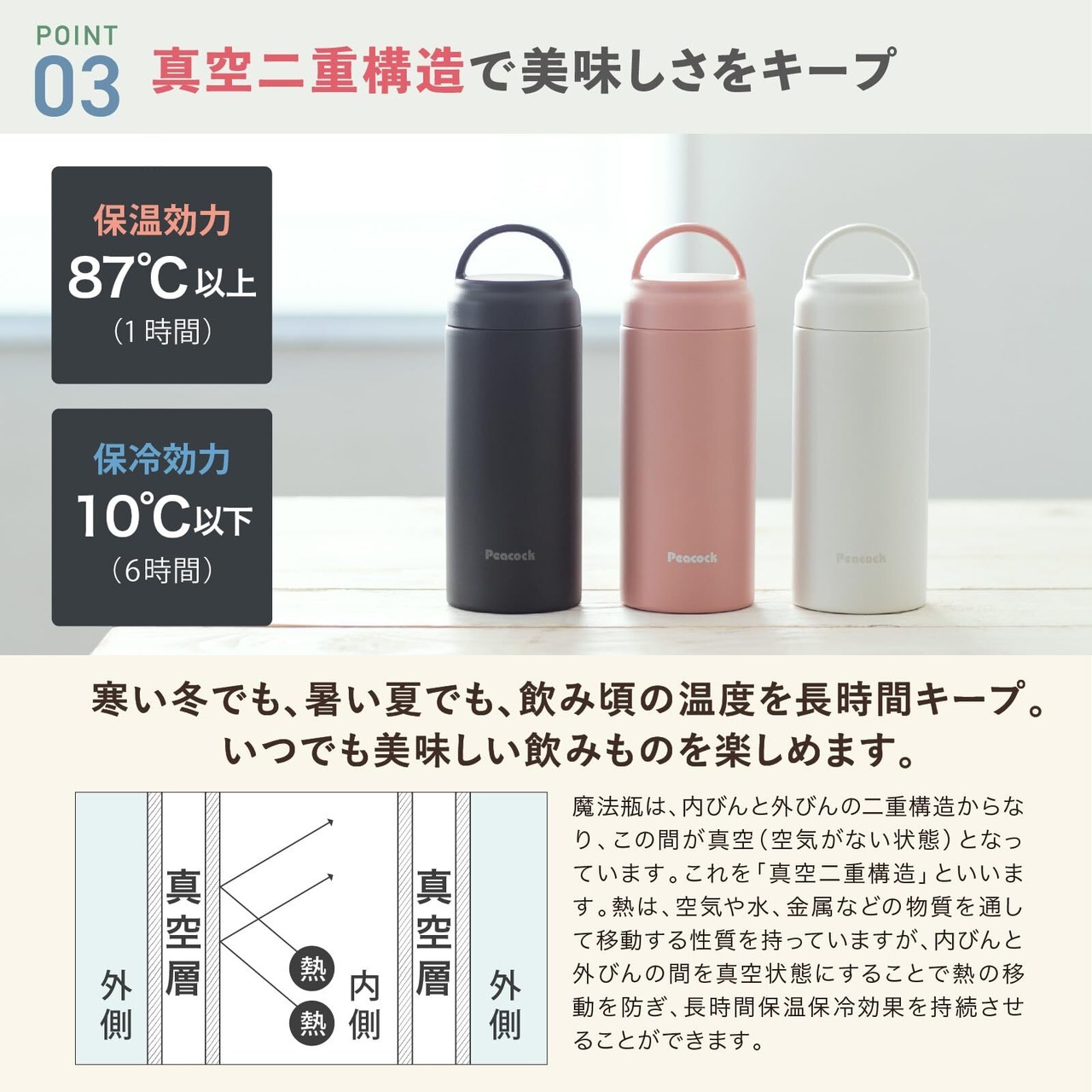 ピーコック魔法瓶工業(The-peacock) ピーコック スクリューマグボトル チャコールグレー 350ml 水筒 保温 保冷 取っ手付き 真空断熱 魔法瓶 タンブラー コーヒー マグ 洗いやすい マグボトル AKZ-35 HCH