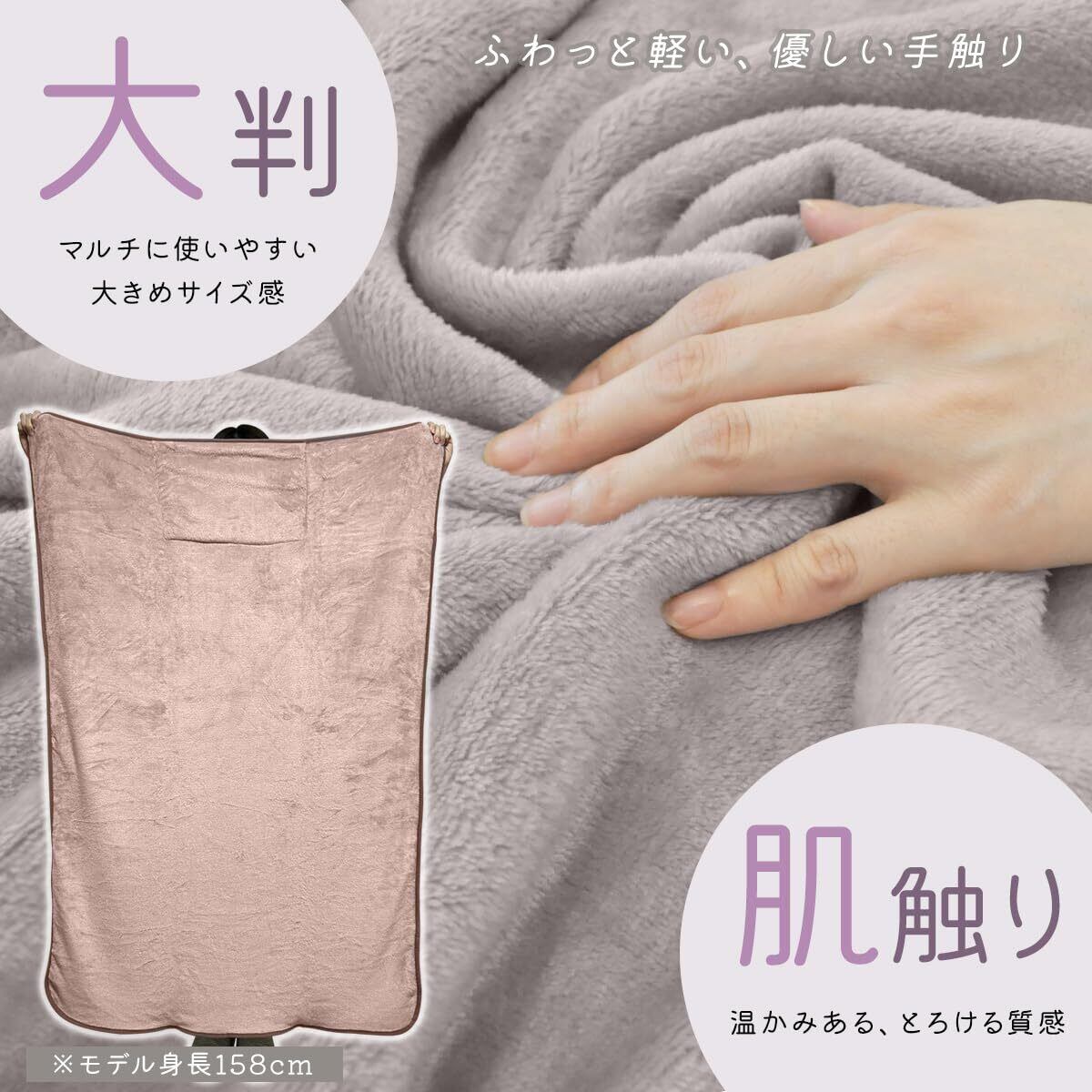 【大判サイズでシーン色々】140cmx90cmの大判サイズで、肩からすっぽり覆えます。また、昼寝用の掛け布団としても十分な大きさです。車内で、オフィスで、学校で。また、キャンプ場で焚火を見ながら等冬のアウトドアのリラックスアイテムとして大活躍します。
