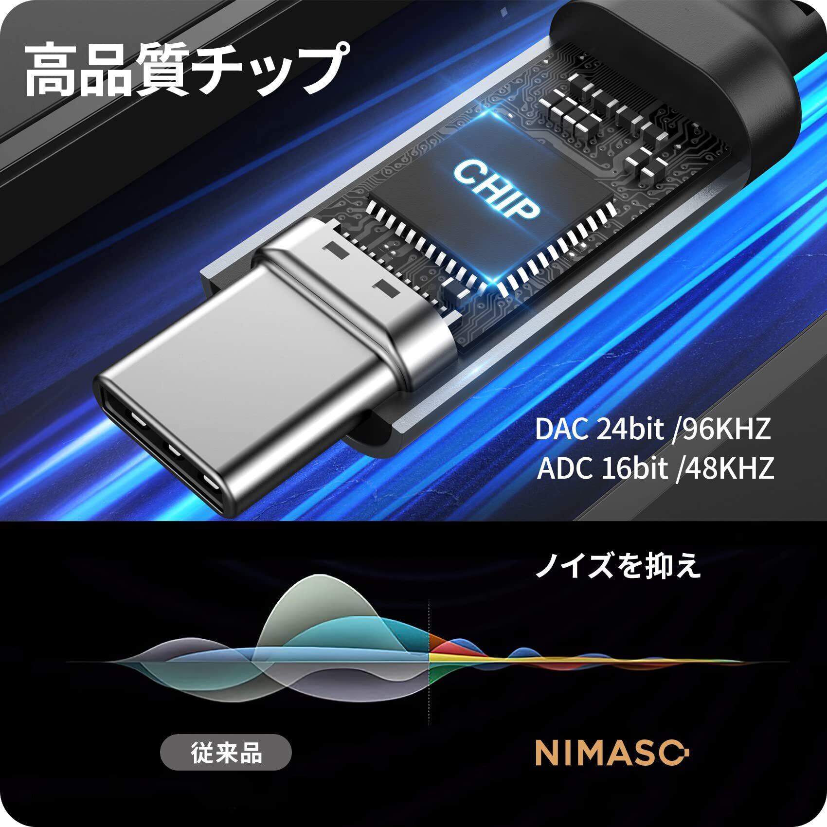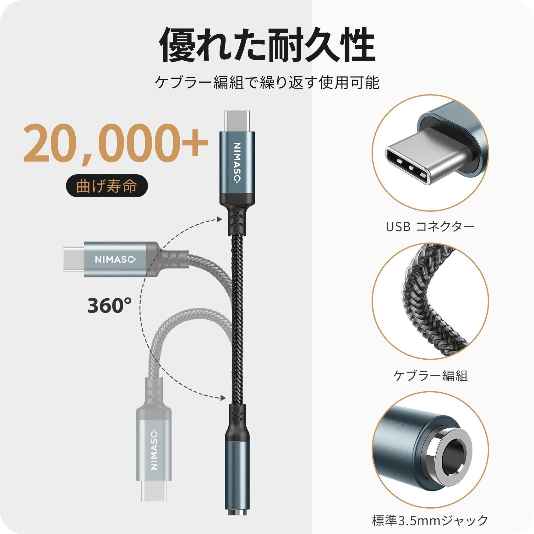 NIMASO type-c イヤホン 変換 タイプc イヤホンアダプタ 3.5mm Aux usb-cオーディジャック 電話/音量調節/音楽対応 iphone16 /15/iPad/iPad Pro/Android/typec機器に適用 NAD22A441