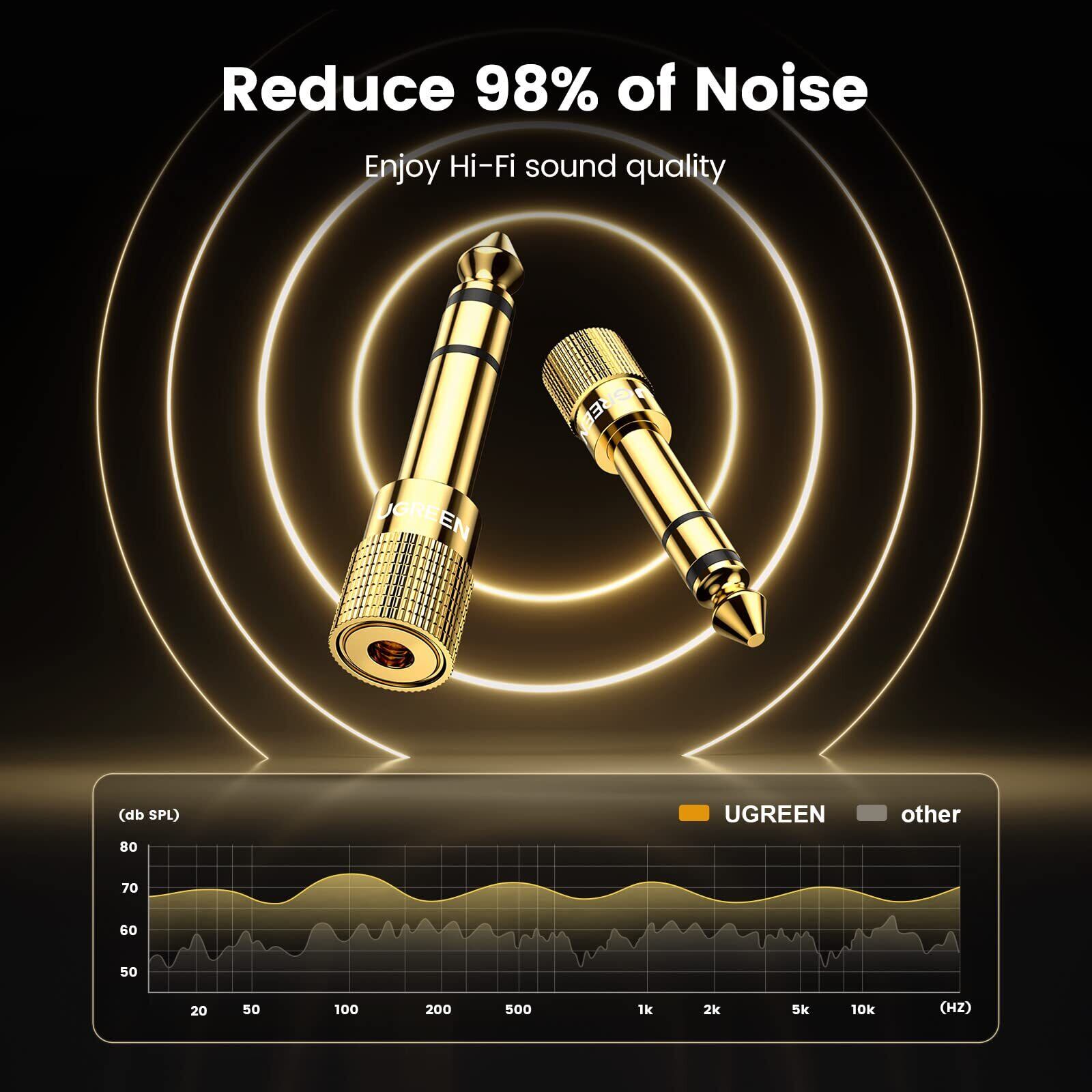 UGREEN 3.5mm 6.35mm 変換アダプタ オーディオケーブル ステレオミニプラグ(メス)⇒ステレオ標準プラグ(オス) 24K金メッキコネクタ 3.5mm to 6.35mm 変換プラグ ヘッドホン/アンプ/電子ピアノ/イヤホン/ミキサー/プレーヤーなどに対応 (2個)