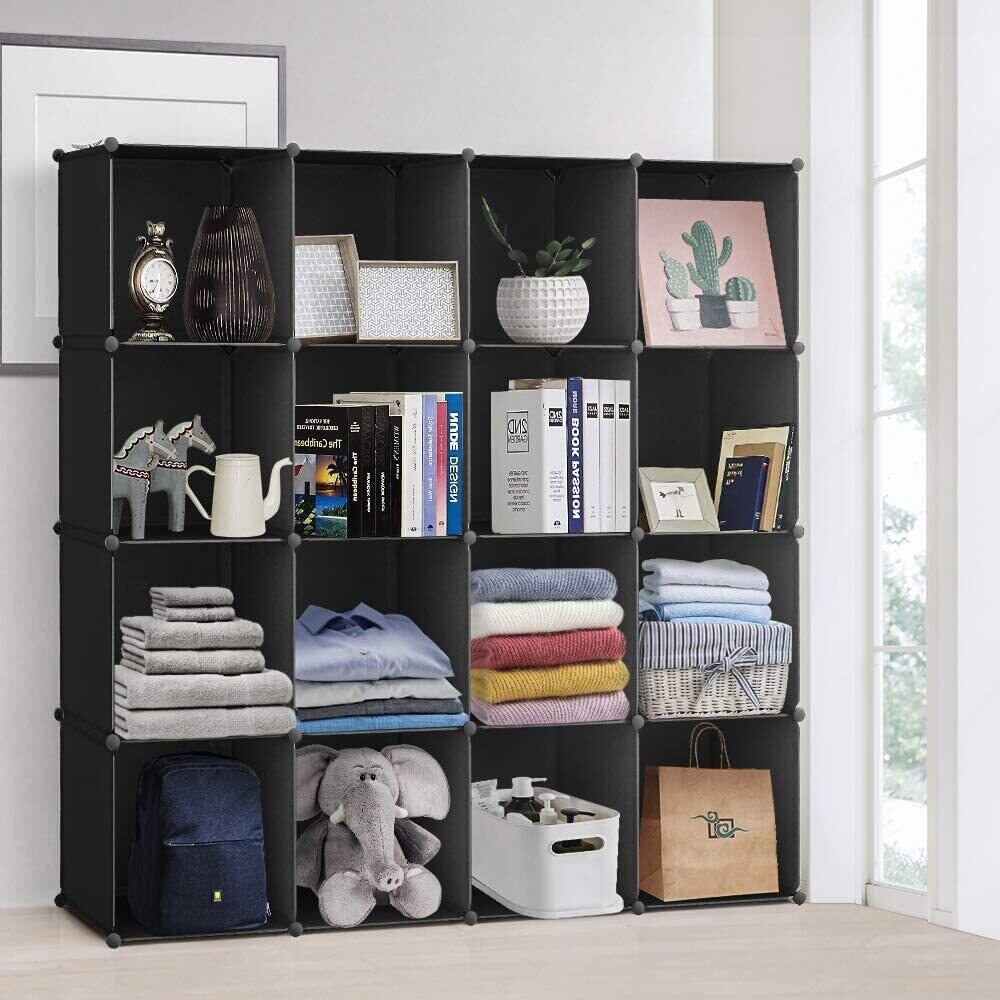 Vacplus 収納棚 大容量 収納ラック 組み立て式 整理棚 収納ボックス 本棚 衣類収納ボックス 多用途 耐久性 省スペース 収納便利 ブラック 1個幅30×奥行30×高30㎝ 16ボックス (ブラック)