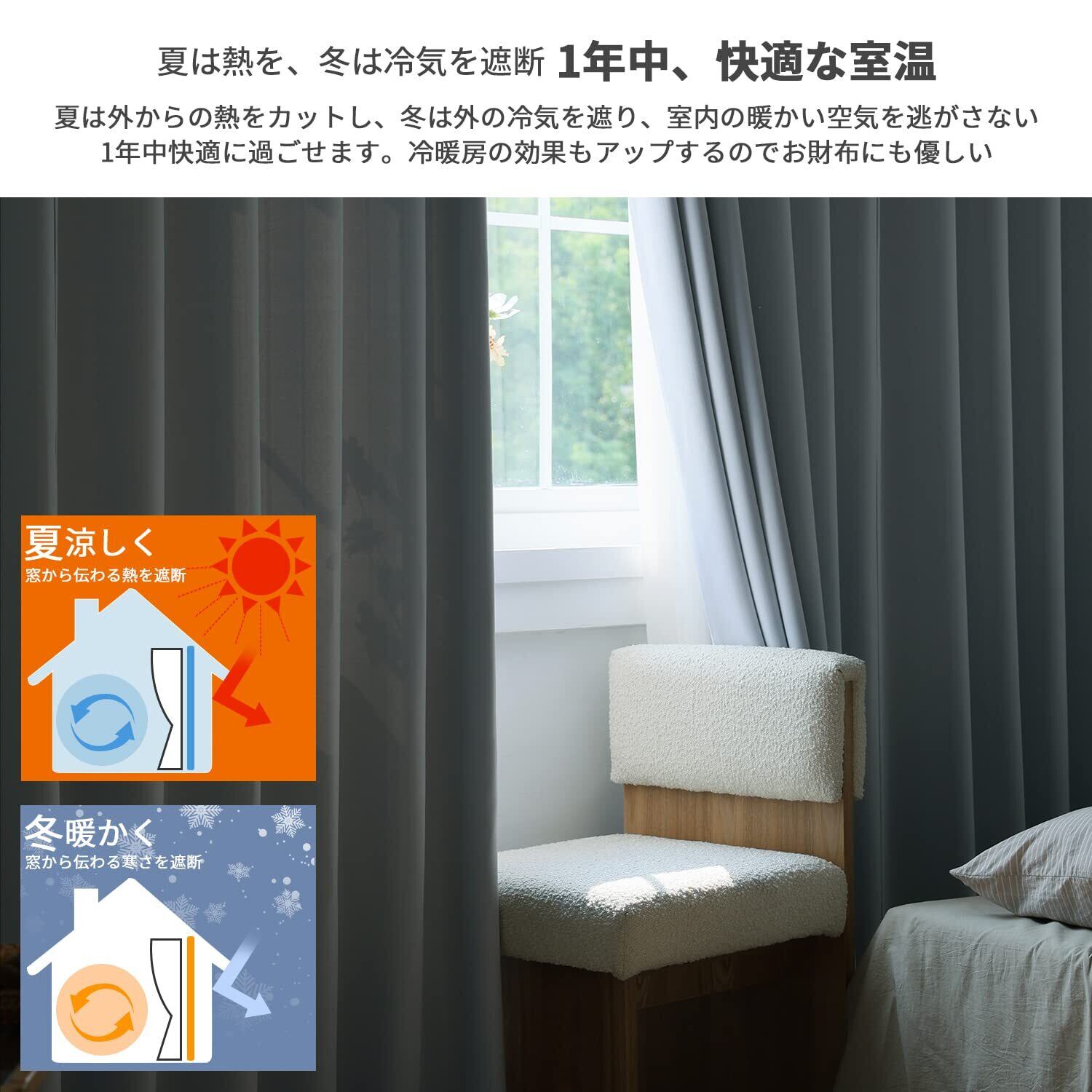 【断熱&防寒&防音】遮熱効果もバッチリ!夏は外から入ってくる熱を、冬は室内から熱が逃げるのを防いでくれる、オールシーズン使える遮光カーテンです。冷暖房の効果もアップするのでお財布にも優しい。厚手の生地で防音効果もある防音カーテンです。
