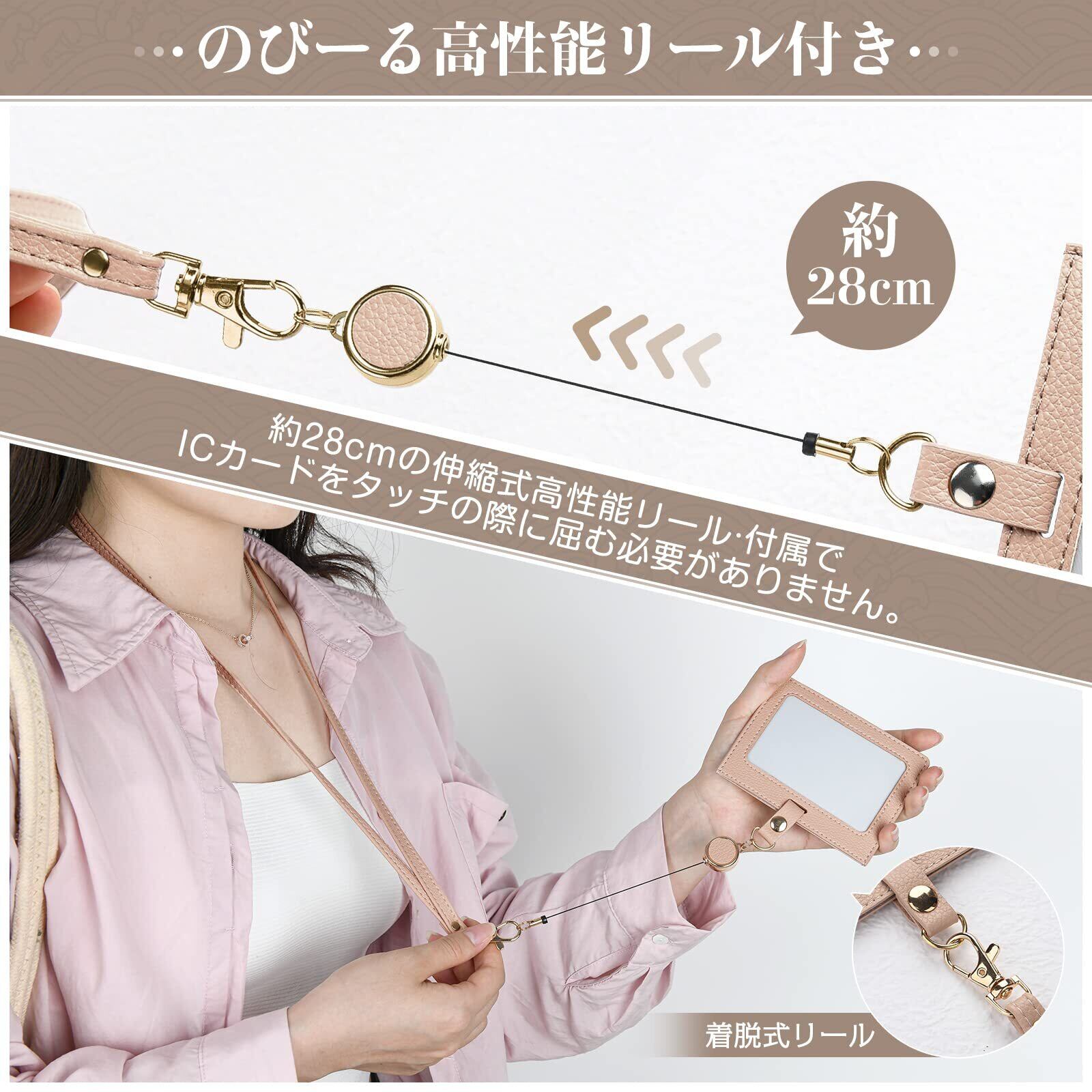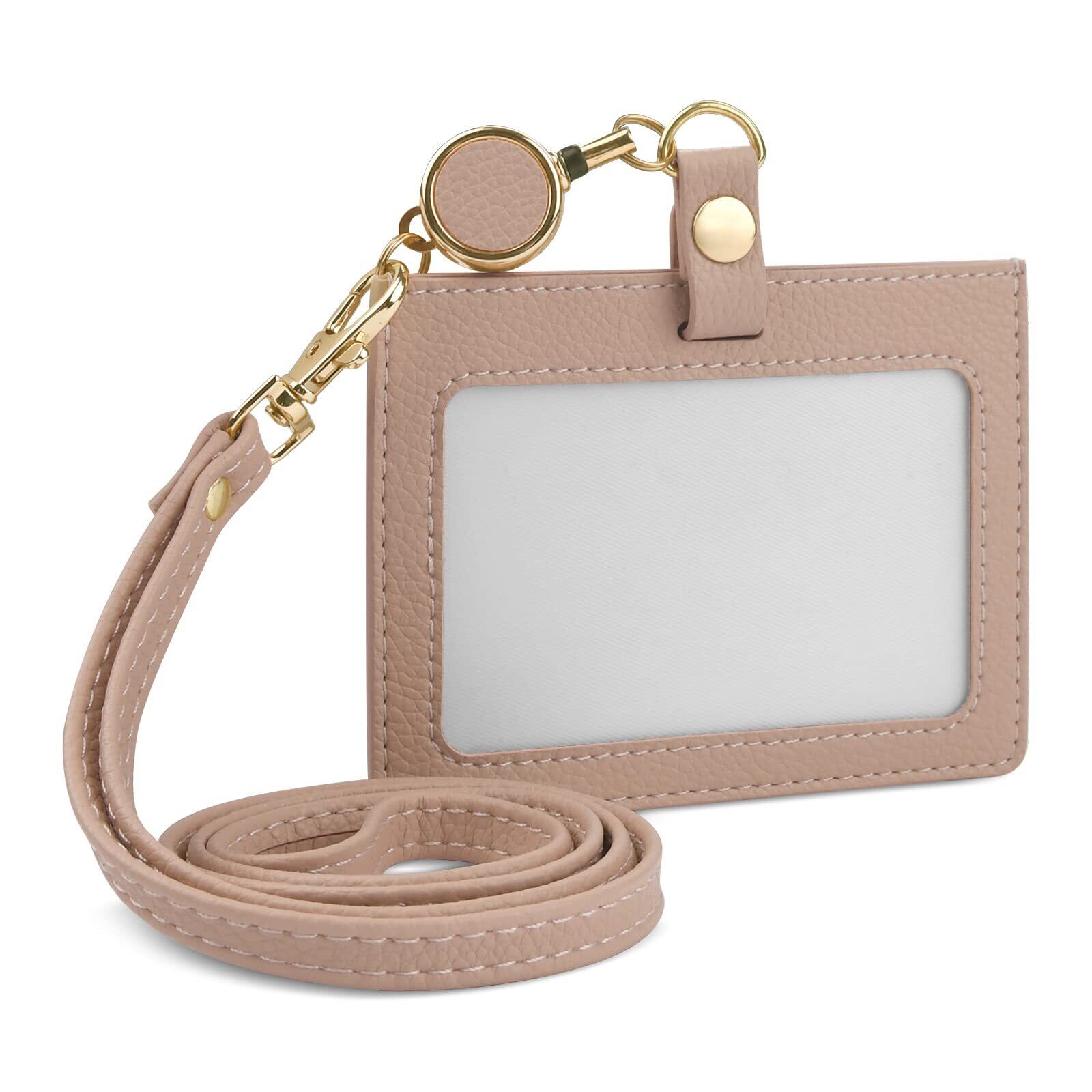 Dockii IDカードホルダー 横型 IDカードケース 社員証ケース レディース メンズ ネックストラップ カードケース 首掛け 両面用 伸縮リール式 ネームホルダー 定期入れ 名刺 名札 パスケース カード3枚収納(コーラルピンク)