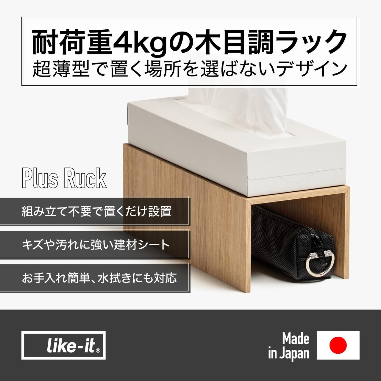 ライクイット (like-it) 卓上収納 コの字ラック プラスラック ミドル 約幅12.2x奥25x高9.5cm ナチュラル 日本製 RA-03 デッドスペース活用 デスク 棚 木目調シート 食器棚収納 キッチン棚