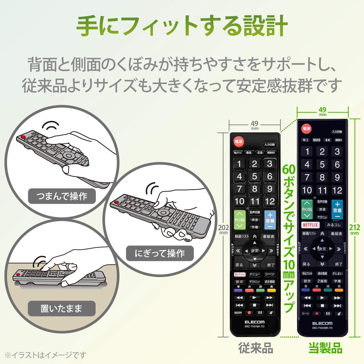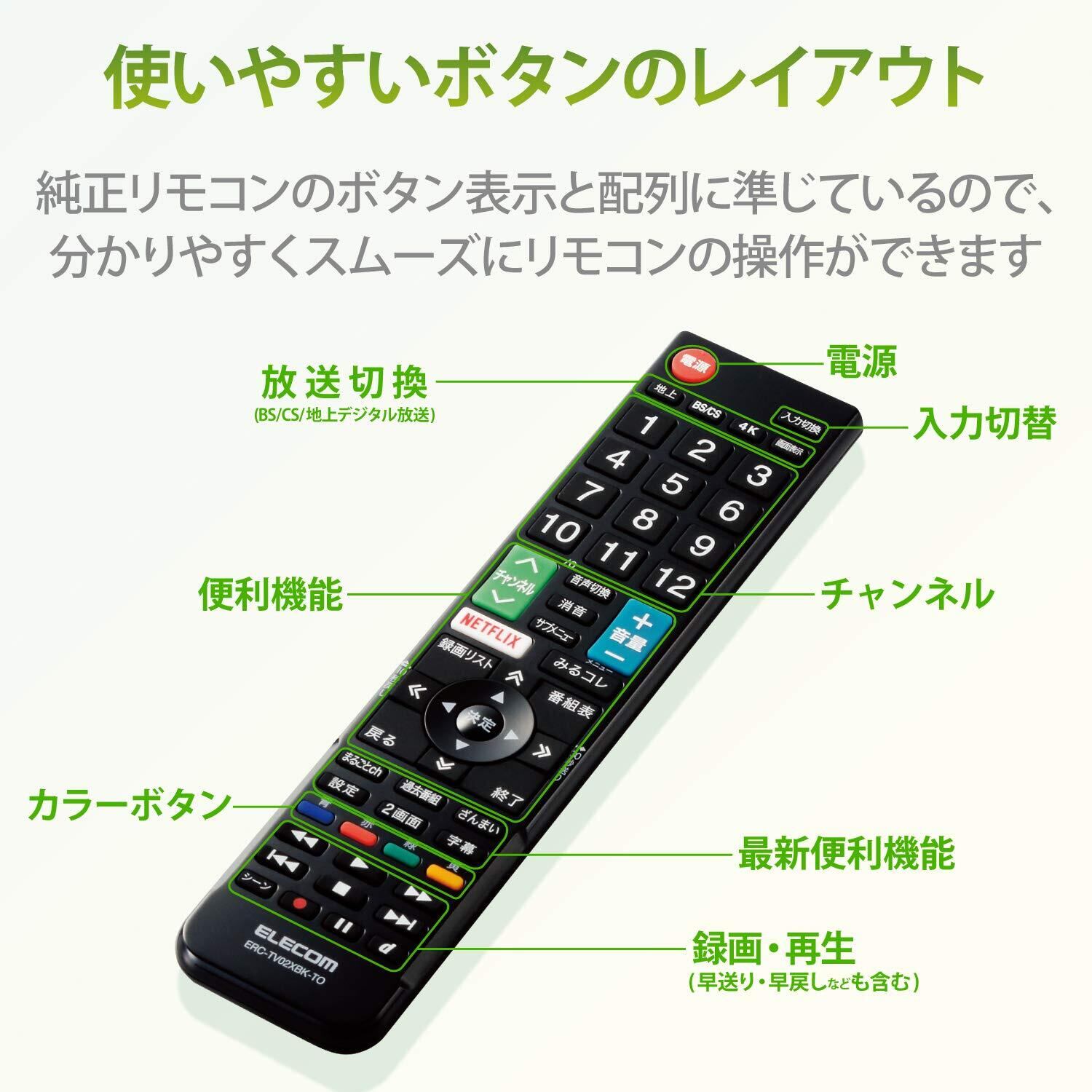 エレコム テレビリモコン TOSHIBA 東芝 レグザ用 【設定不要ですぐに使えるかんたんリモコン】 ブラック ERC-TV02XBK-TO