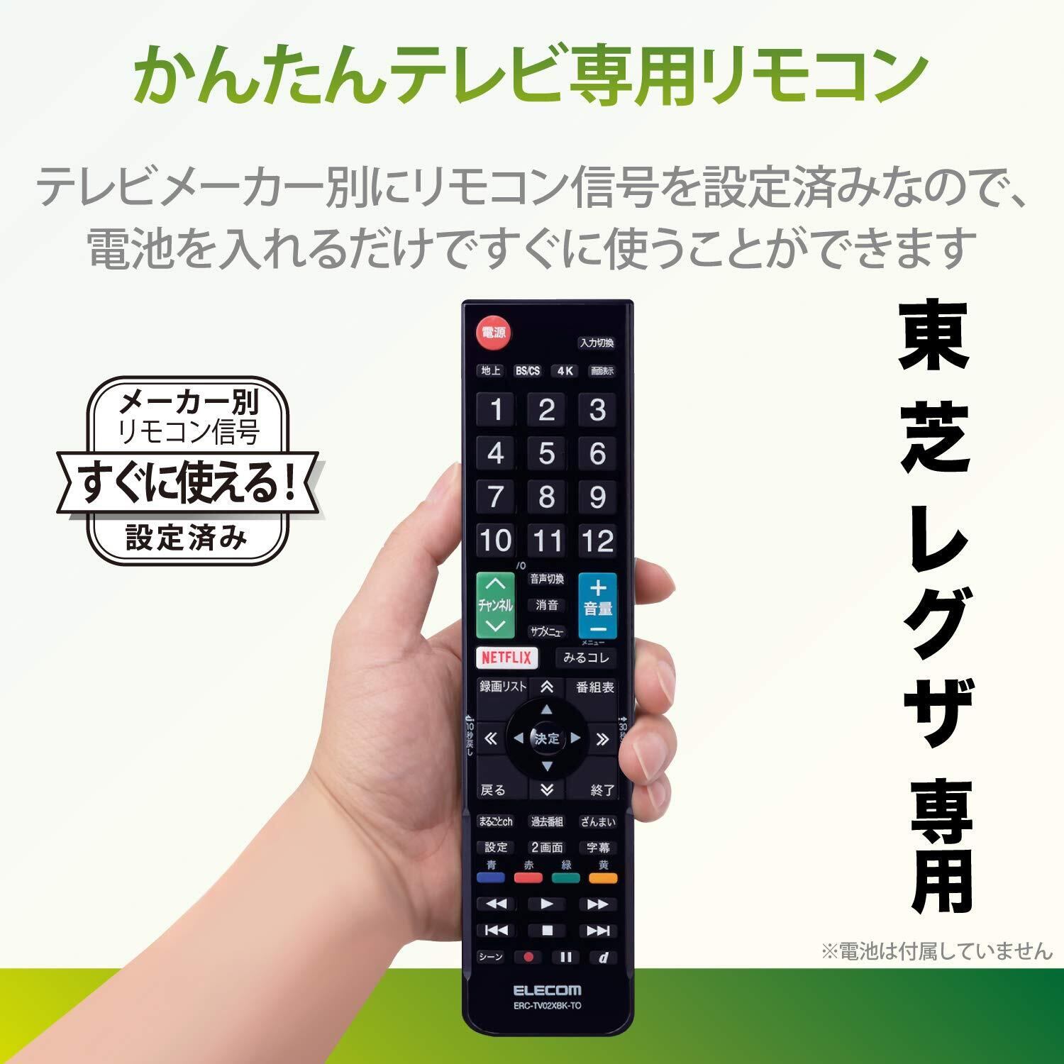 東芝製テレビ レグザに設定済みで、登録作業をすることなくそのまま使えるかんたんTV用リモコンです。