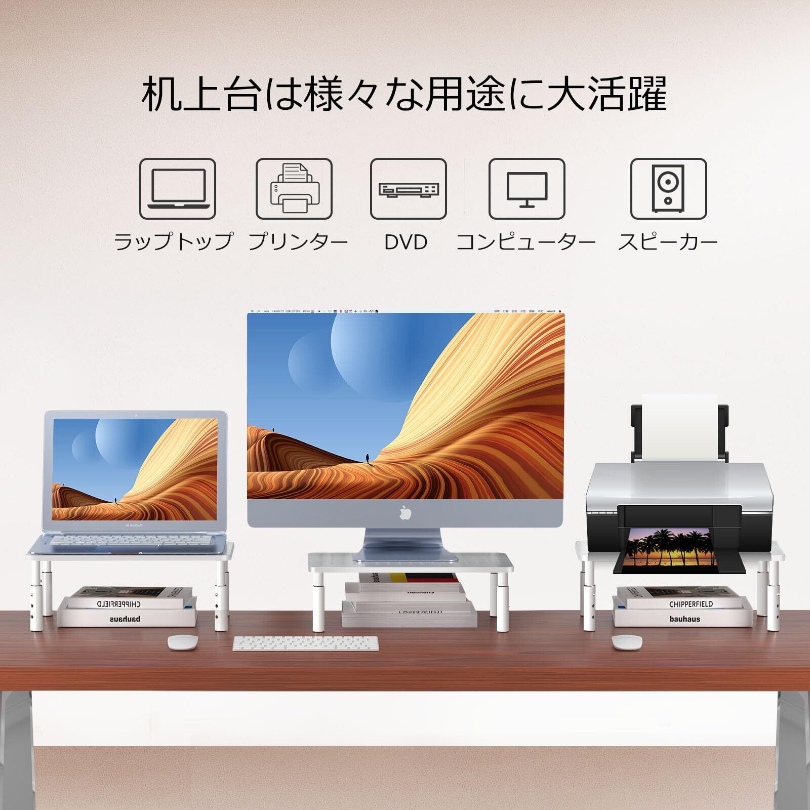 【取り付け簡単&多機能】 工具不要!ただ2分で取り付ける完了が可能です。本体は軽量で持ち運びも便利で、実用な机上台です。モニター以外に、プリンターや電話機、FAX、本など色々なものが設置できるのでシーンを選ばる多機能に使えます。オフィス、寮、学校や研究室やりピングルームなどの場合もオススメです。