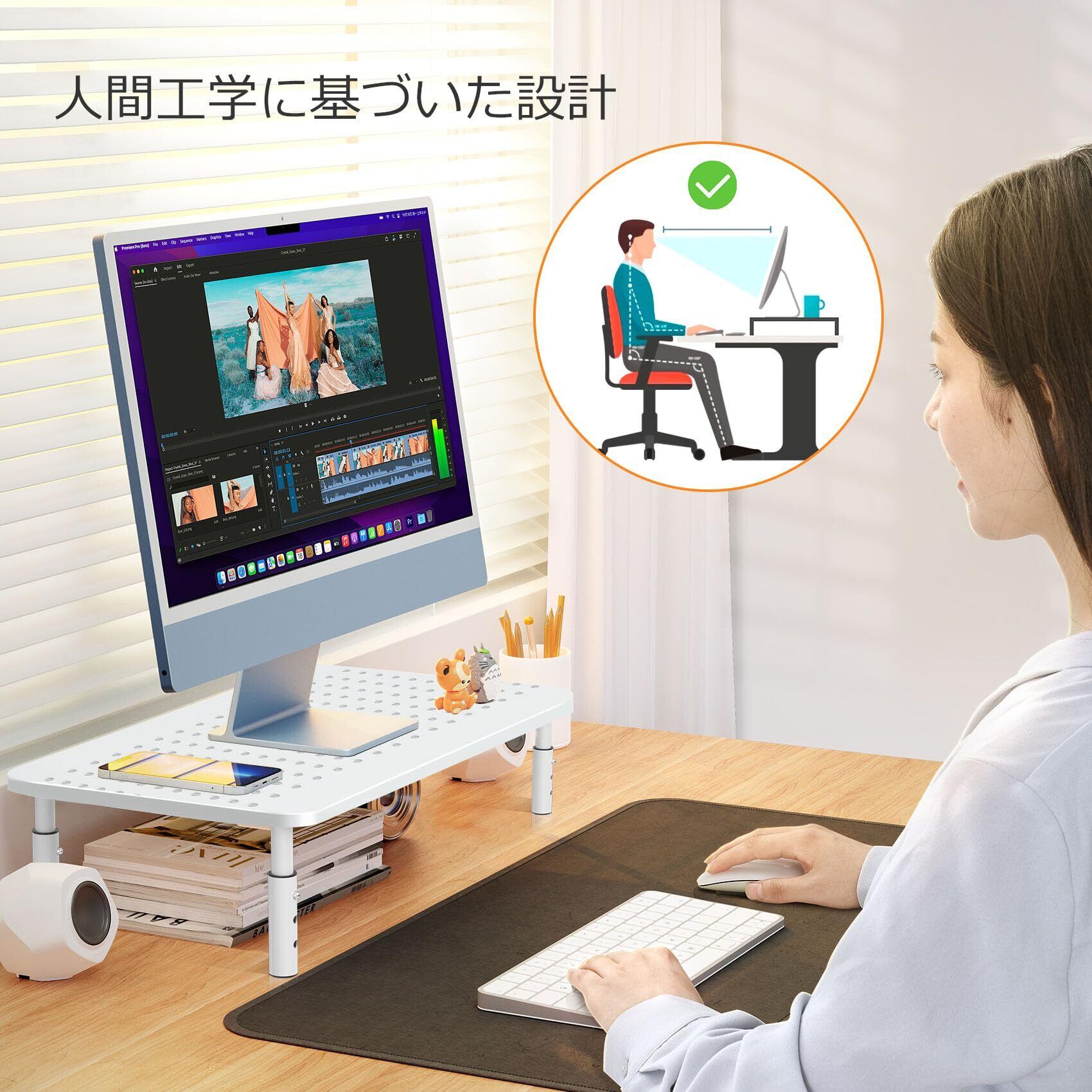 Bracwiser 机上台 モニター台 ノートパソコンスタンド モニタースタンド キーボード収納 机上収納 卓上ラック 白 姿勢改善 高さ調整可能 耐荷重20kg MST003W
