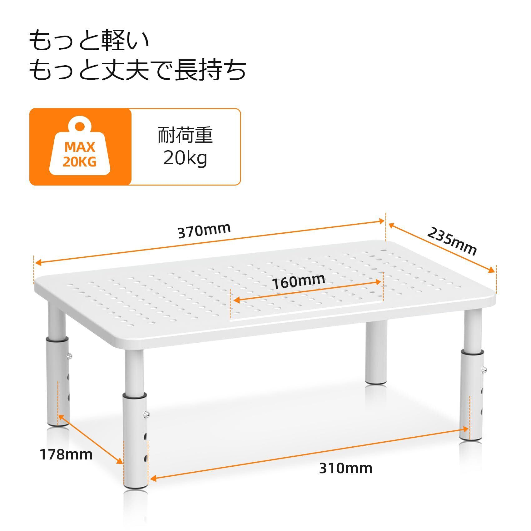 【製品仕様】幅:37cm 奥行き:23.5cm 高さ:10-12-14cm三段階高さ調整可能▶天板下 幅:31cm 奥行き:17.7cm▶材質:スチール▶最大耐荷重:20kg