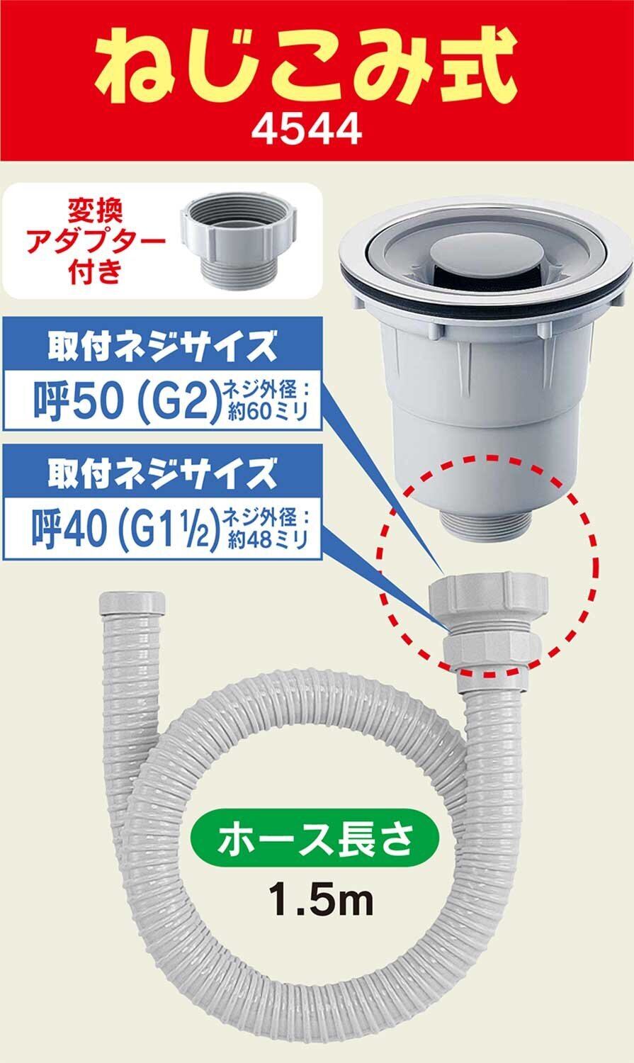 カクダイ(KAKUDAI) 流し台用ホース ねじこみ式 40・50兼用 0.7m 4544-0.7