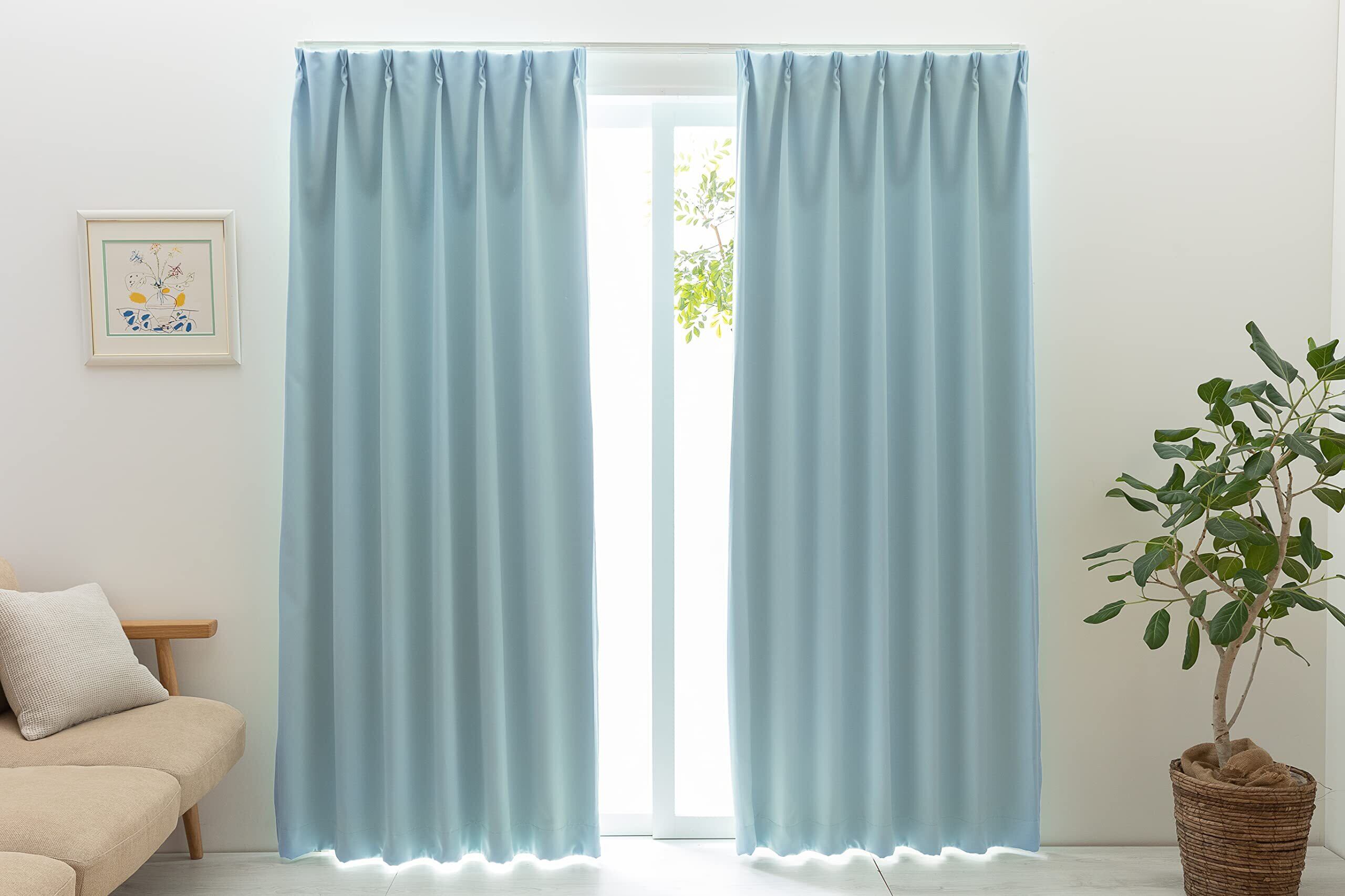 ユニベール(Univer) 遮光ドレープカーテン ベルーイ ブルー 幅100×丈190cm 2枚組