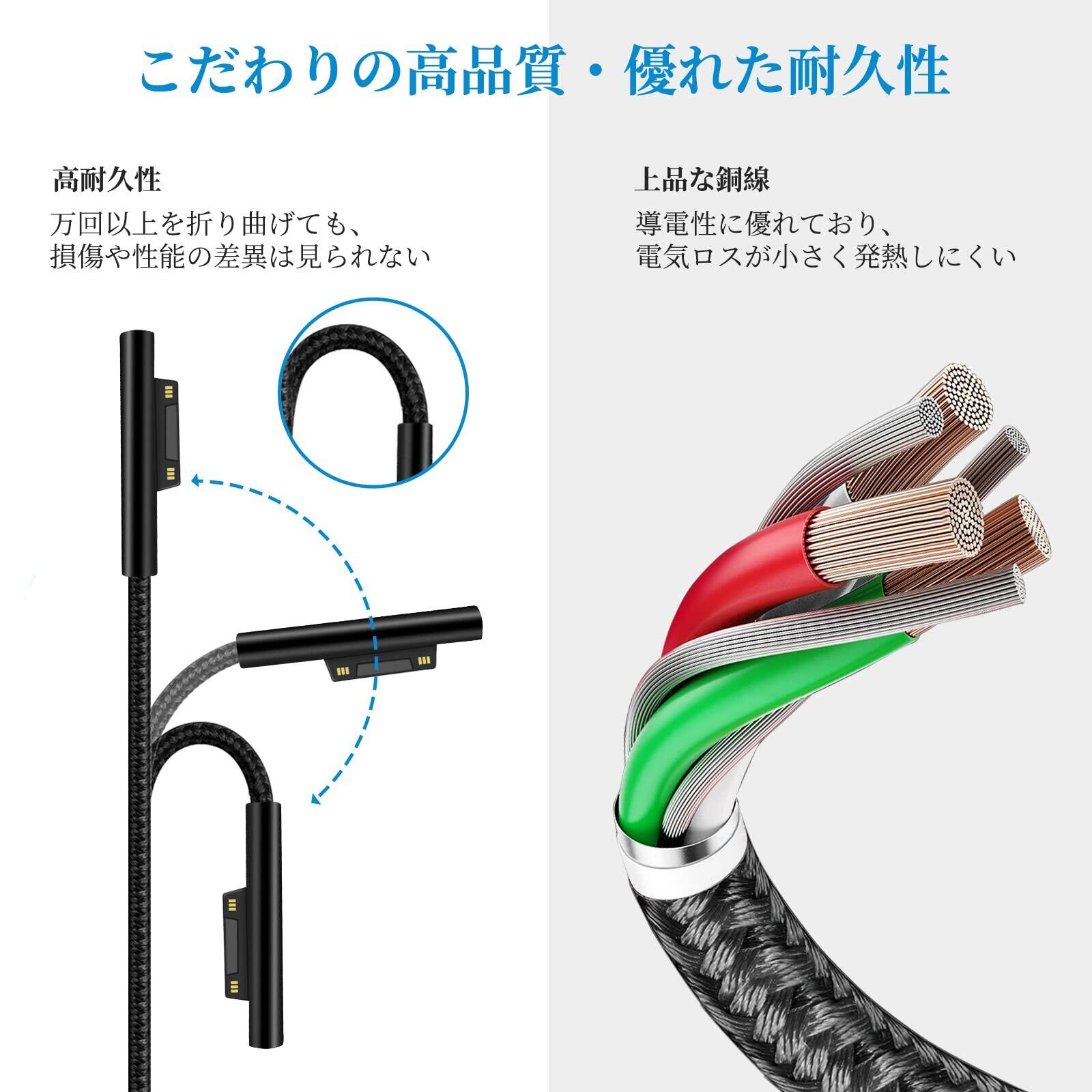 【対応機種】Microsoft Surface Pro 3 / Surface Pro 4 / Surface Pro 5 / Surface Pro 6 / Surface Pro 7 / Surface Pro X / Surface Laptop 1 / Surface Laptop 2 / Surface Book / Surface Book 3 / Surface Goなどサーフェス タブレット/ノートPC。【製品仕様】長さ:1.8メートル、材質:ナイロン編み。