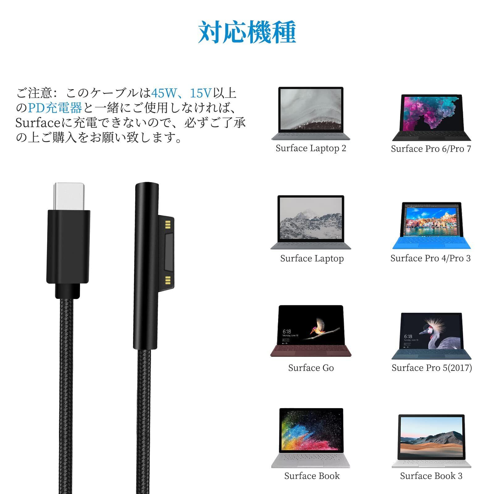 Surface 充電ケーブル ナイロン Type-C to Surface 急速充電ケーブル PD対応 1.8m マイクロソフト サーフェス 充電用 【45W/15V以上のPD充電器が必要】 Surface Pro 8/7/6/5/4/3/Pro X/Surface Laptop/Surface Go/Surface Laptop Go/Surface Bookなど対応 Surface 充電コード