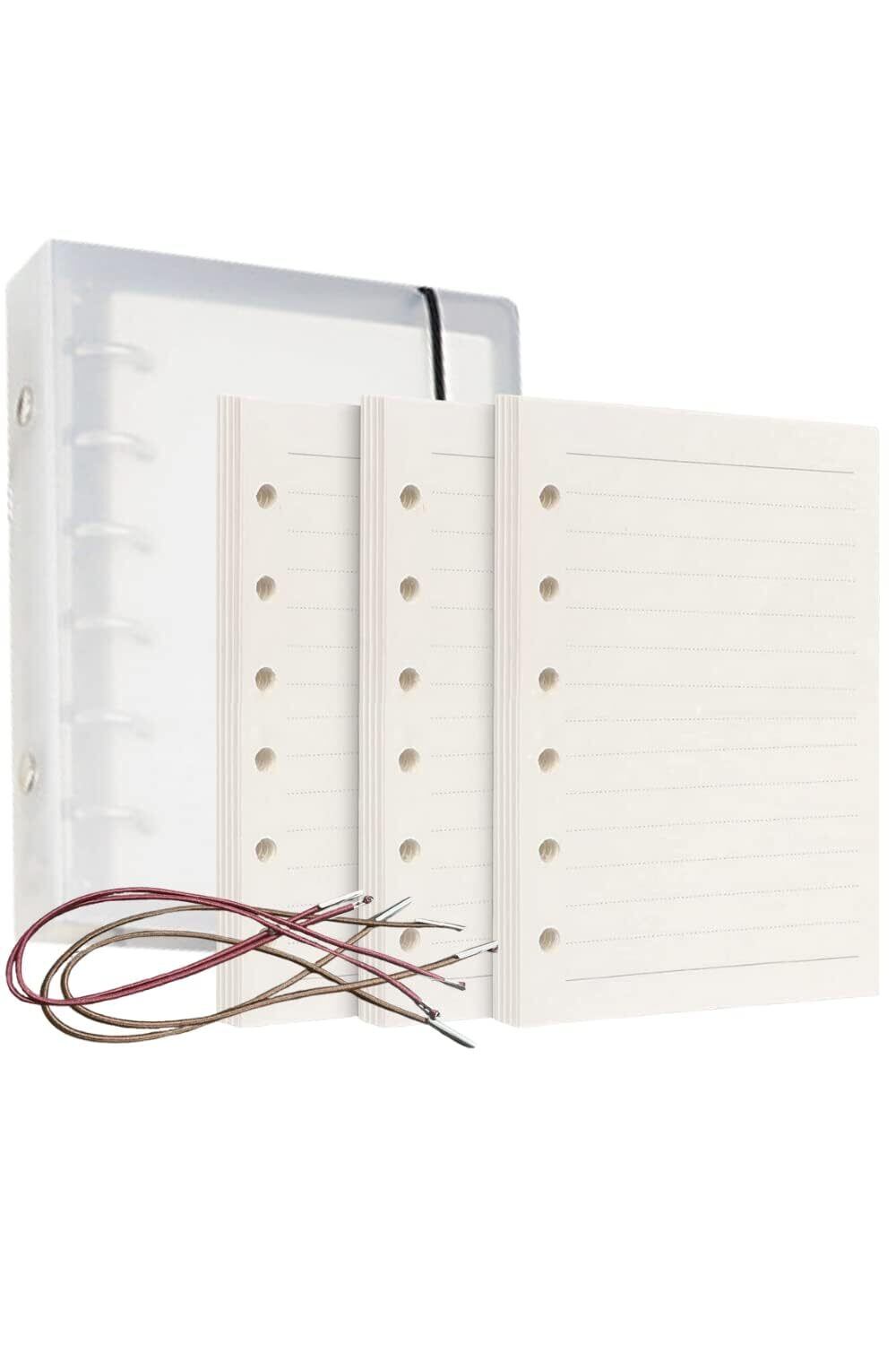 【3冊セット枚数】ミニ6穴システム手帳バインダー×1個+6穴A7手帳リフィル3冊×45枚 合わせて135枚;