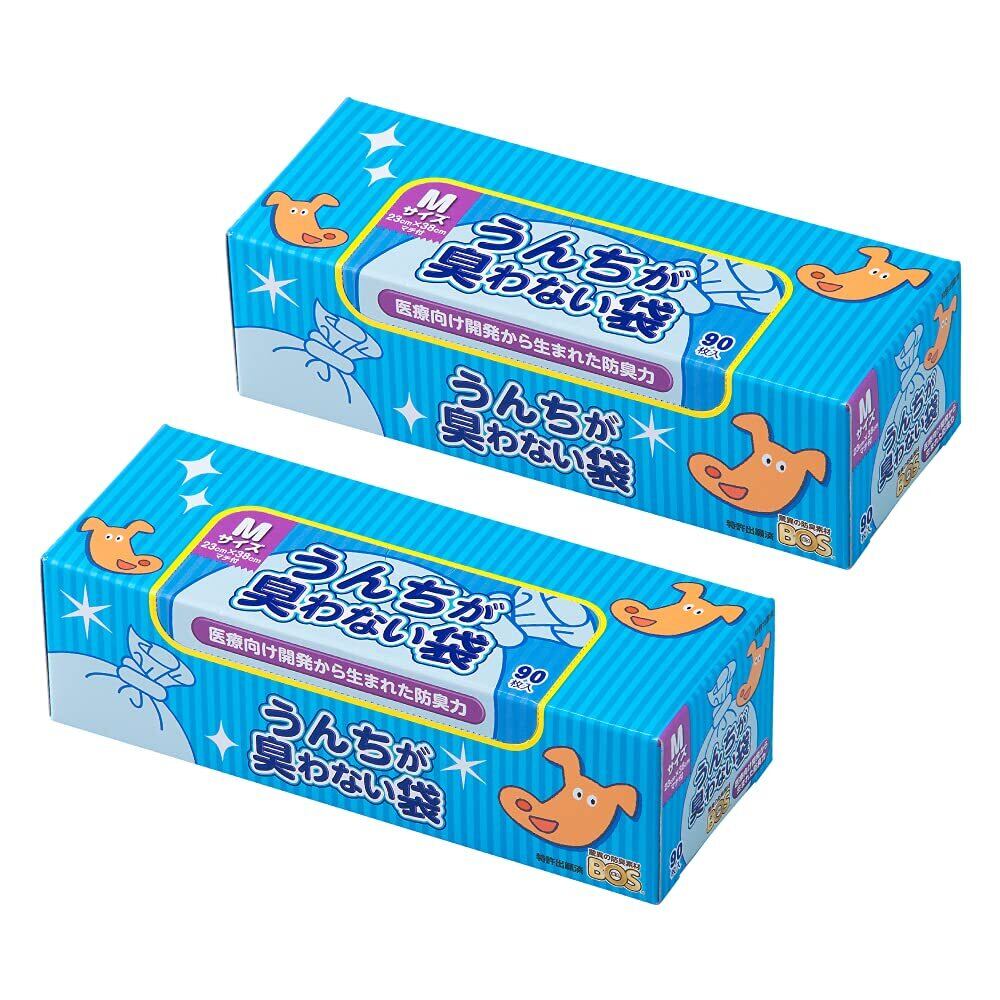 驚異の防臭袋 BOS (ボス) うんちが臭わない袋 2個セット ペット用 うんち 処理袋【カラー:ブルー】 (Mサイズ 90枚入)