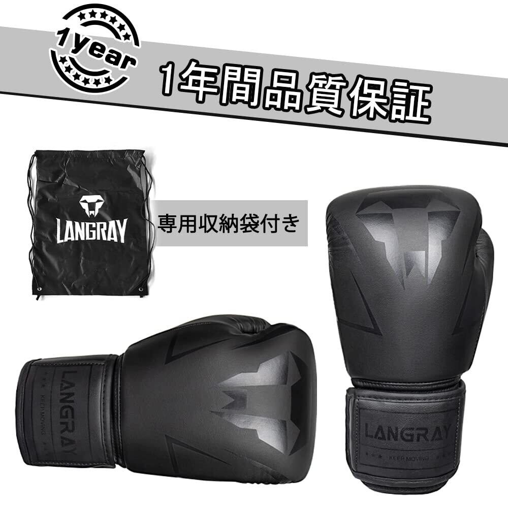 パンチンググローブ ボクシンググローブ LangRay boxing gloves 立体構造 肉厚クッション キックボクシング スパーリング 空手 ムエタイ 格闘技 良質PUレザー ジム用 (10oz, 黒い色)