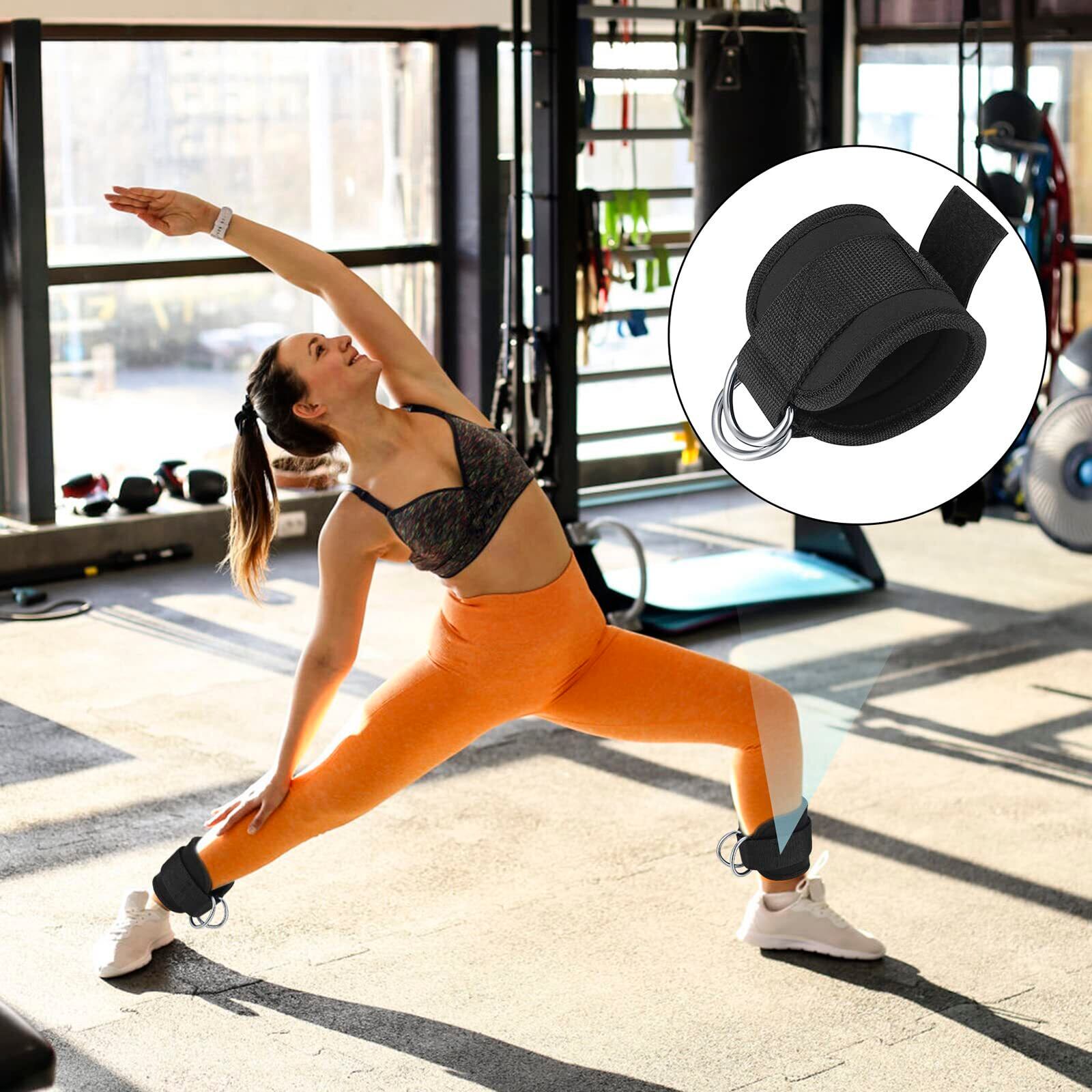 2パック アンクルストラップ ケーブルマシン用 足首ストラップ 調節可能 フィットネス アンクルバンド ジム、フィットネス、脚のエクササイズ、ウェイトリフティング、脚、男性、女性用のダブル D リング足首カフス