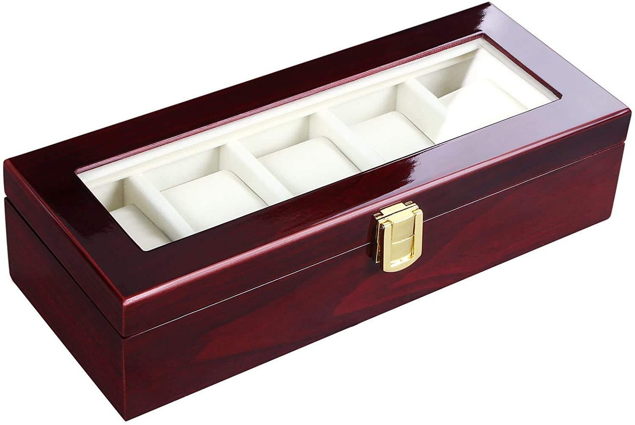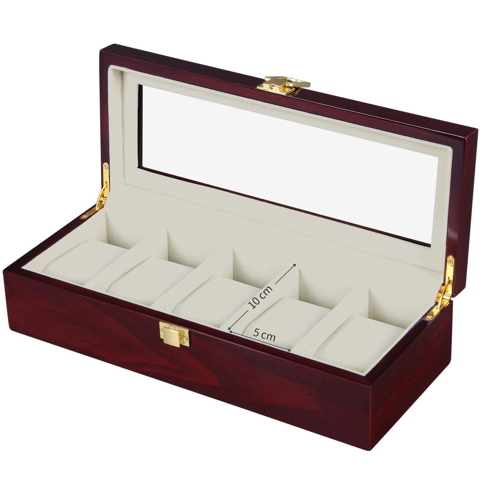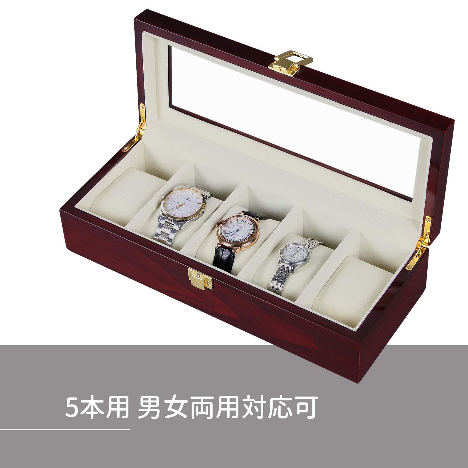 SONGMICS 腕時計収納ケース 5本 木製 透明窓付き 母の日 父の日 高級腕時計ボックス クリスマスプレゼント コレクションケース 時計保管 ウォッチボックス アクセサリー収納兼用 ピアノラッカー仕上げ ギフト JOW005C01