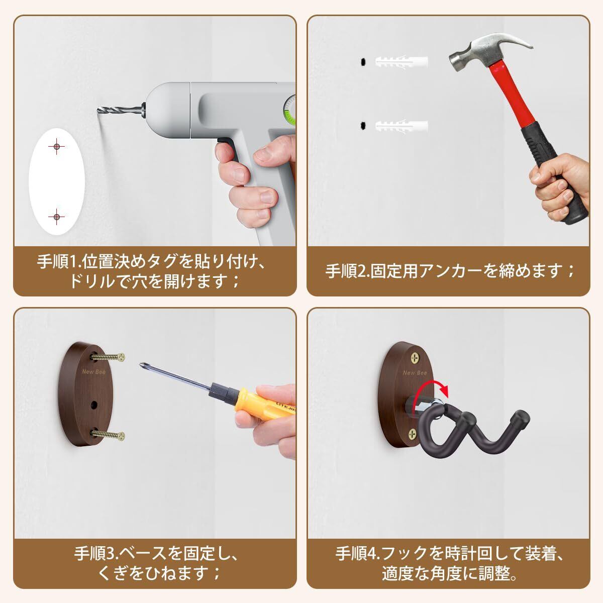 New Bee ギターハンガー 壁掛け ギターフック 安定 省スペース ギターホルダー 取り付け簡単 ギター ベース ウクレレなどの楽器に適用 GH01 2個セット