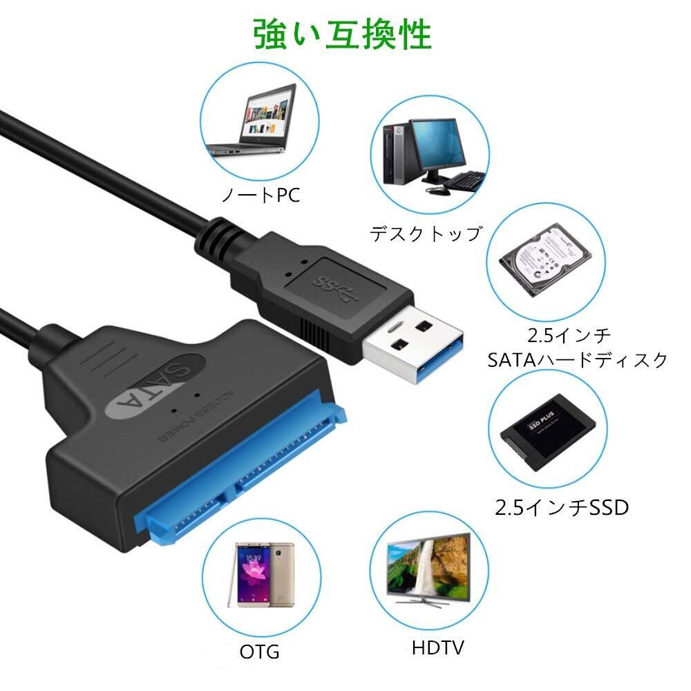 YFFSFDC SATA-USB 変換ケーブル 2.5インチ SSD/HDD用 SATAケーブル 5Gbps 高速 SATA3 コンバーター USB3.0 2TB SSD/HDD 外付け 変換 コネクタ ハードディスク ポータブル(3.5インチのHDDは対応しておりません)