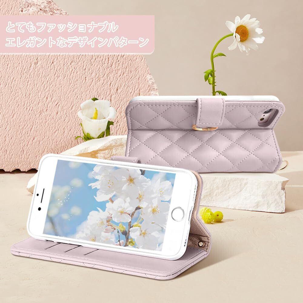 MAGICASE FOR iPhonese第2世代 第3世代 ケース 手帳型 iphone se2 ケース 手帳型 iphone8 ケース 手帳型 iphone7ケース 手帳型リング付きチェック柄 刺繍 アイフォンSE se3 2022 おしゃれ シンプル カードポケット 可愛い 財布型 人気 折り畳み式 実用 高級PUレザー 柔軟性 気質 落下防止 贈り物 全面保護(4.7インチ)パープル