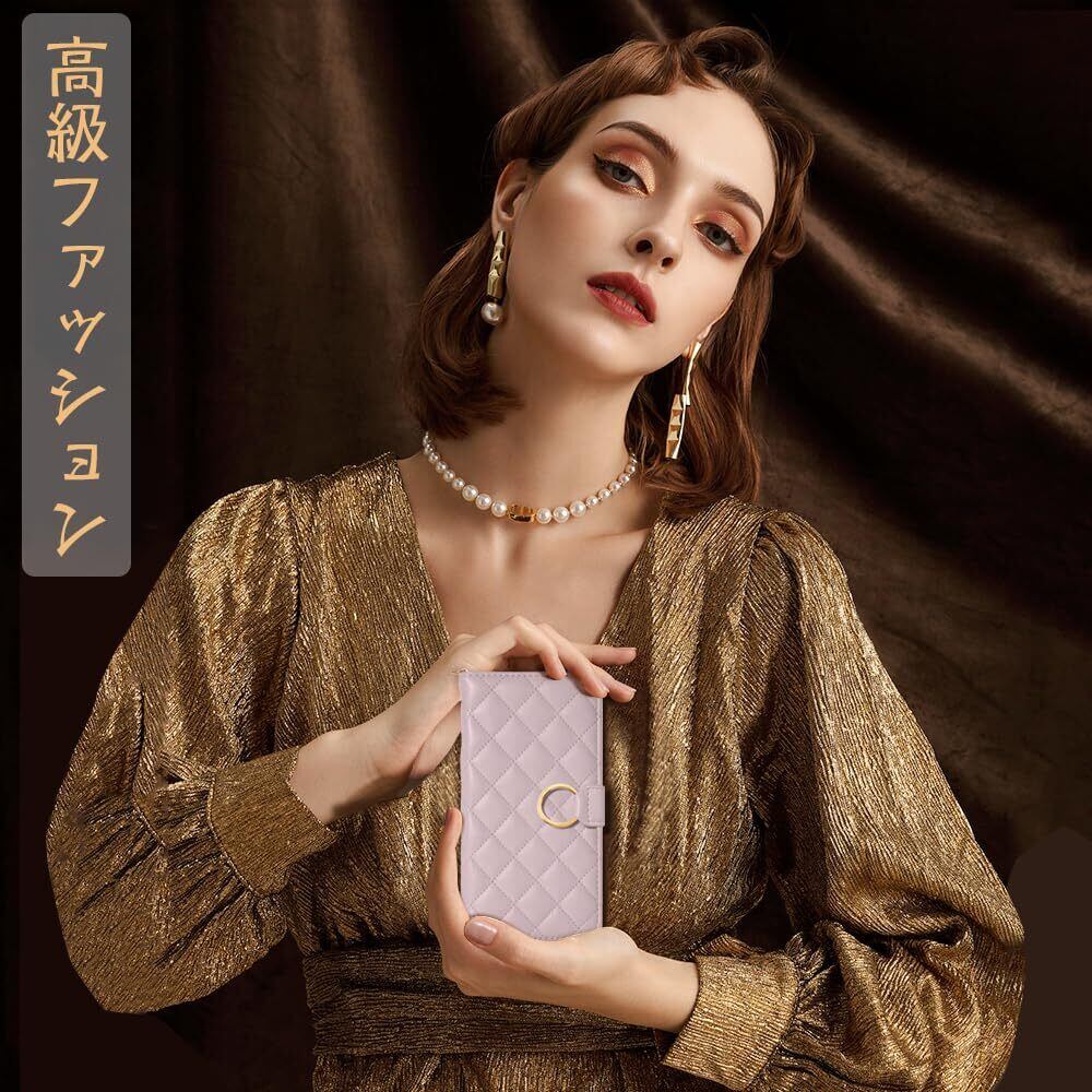 【高級素材採用、のキルティング技法で作られており】本商品は最高級のキルティング技法で作られており、丁寧に縫われて、紋様も十分おしゃれです。肌触りにも優れています 耐熱性と柔軟性を誇る上質なPUレザーで作られた上、素材の表面に手触りは非常に良いフィット感を与えられ、落ち着いてる色、シンプルなデザインこそ、女性の高級感を引き立たせる;滑りにくく、落下時の衝撃を効率よく吸収するようにケースの各コーナー内側が設計されています。さらにカメラレンズ保護構造でスマホ本体を傷から360度しっかり保護してくれます。