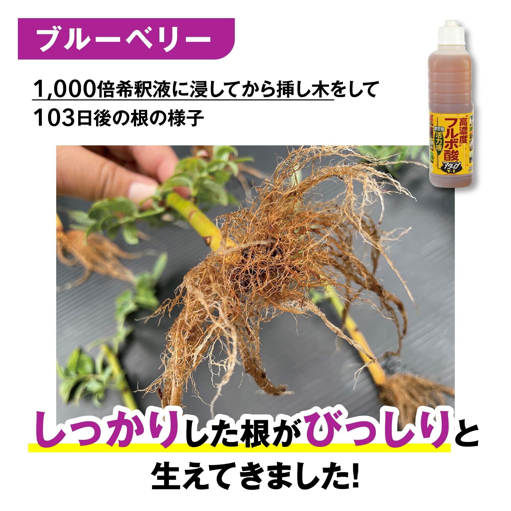特長:微生物による団粒化を促して保肥力を高め、フルボ酸等の効果で根張りを良くします。