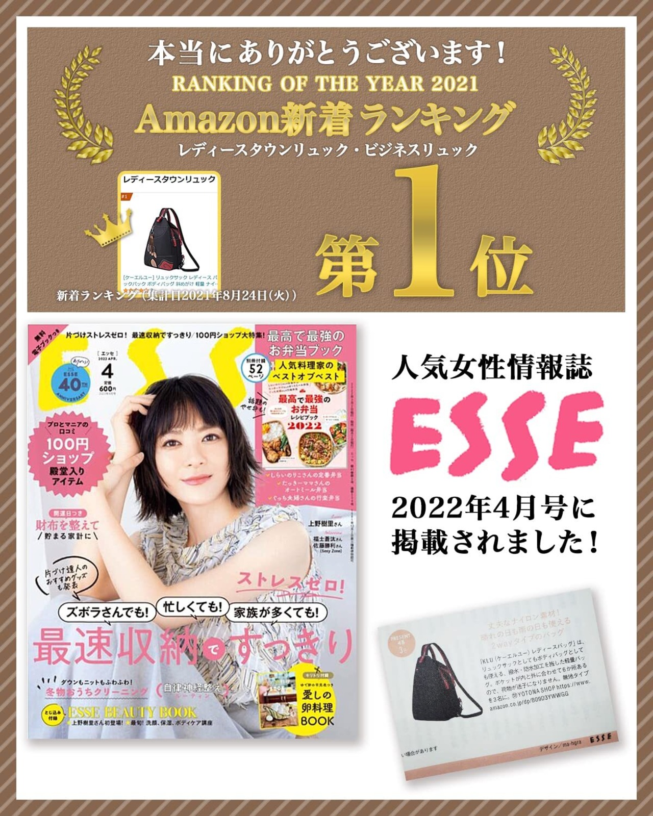 女性に扱いやすい小さめサイズのレディースバックパックです。