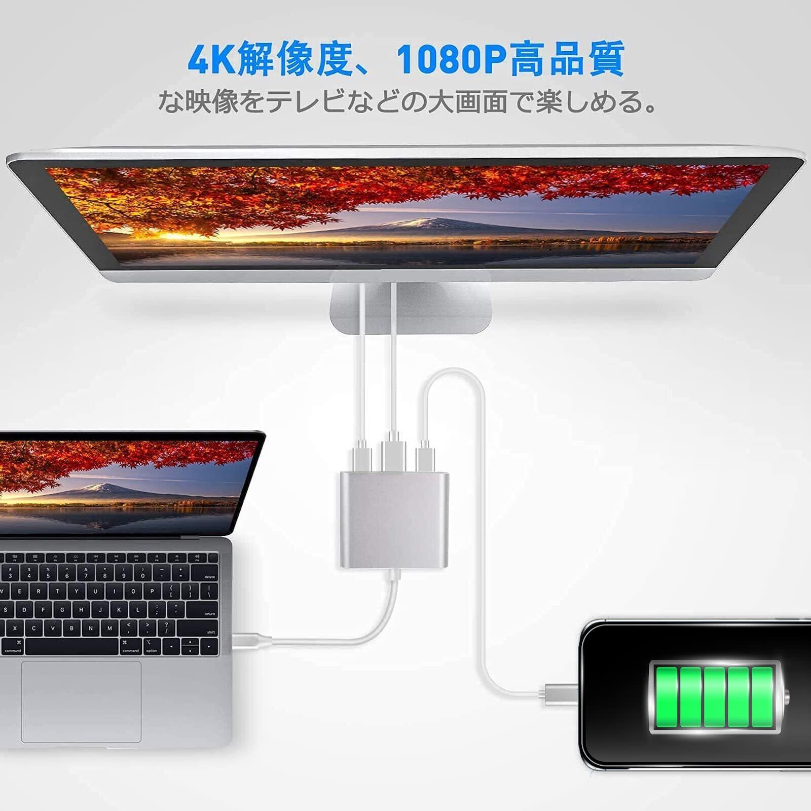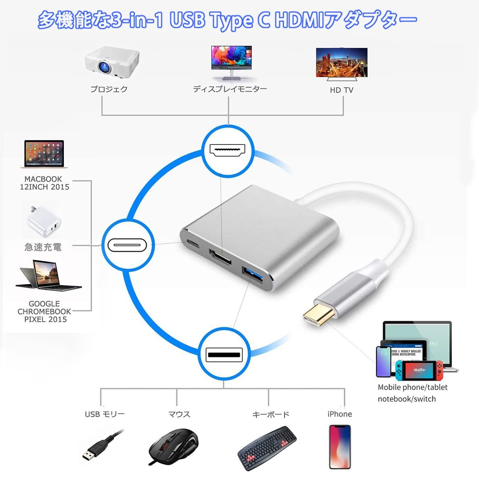 USB Type C HDMI アダプター Fuyi タイプ c hdmi 4K@30HZ 解像度 + 100WPD充電+USB 3.1高速データ転送 3in1 変換 adapter テレビ/モニター switch i-Phone 15/16/MacBook Pro/Mac Air 2018-2024/Mac mini/iPad Pro Galaxy その他USB-C機器(シルバー)