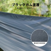 【ブラックガム塗層加工・遮熱性UP!】耐久性が高く、ブラックガム塗層を加工して、普通のタープより、紫外線カット率99.9%になりました。夏には陽射を遮り、タープの下で皆がストーブを囲んで暖を取ることやバーベキューをして快適です。 春夏秋冬を問わずご利用いただけます。