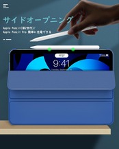 iPad Air 11インチ M3/M2 ケース 2025/2024 Dadanism iPad Air 11インチ/Air 5 Air 4 10.9インチ カバー Air 11 第7世代/第6世代 オートスリープ 三つ折り スタンドケース PU+PC 半透明 PencilPro/第2世代ワイヤレス充電 ネイビーブルー
