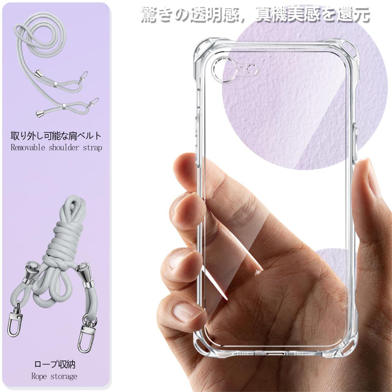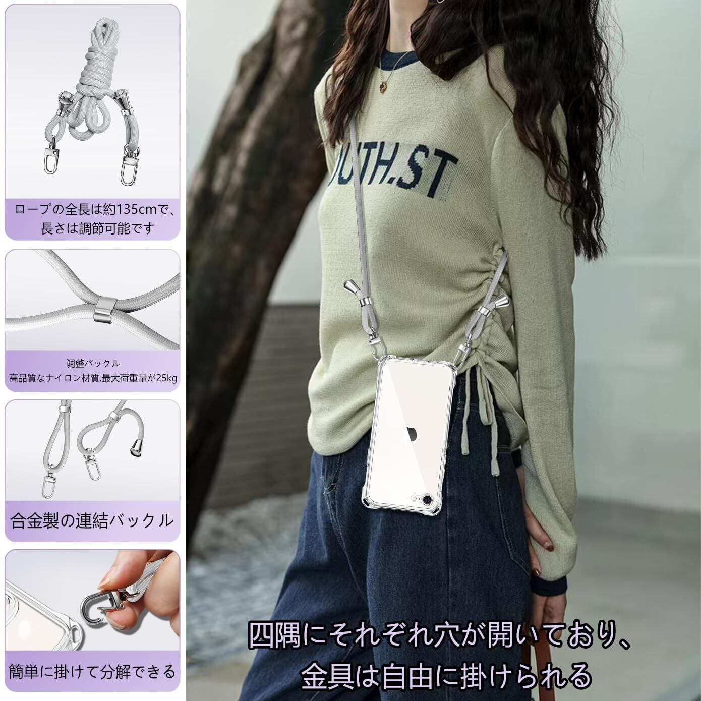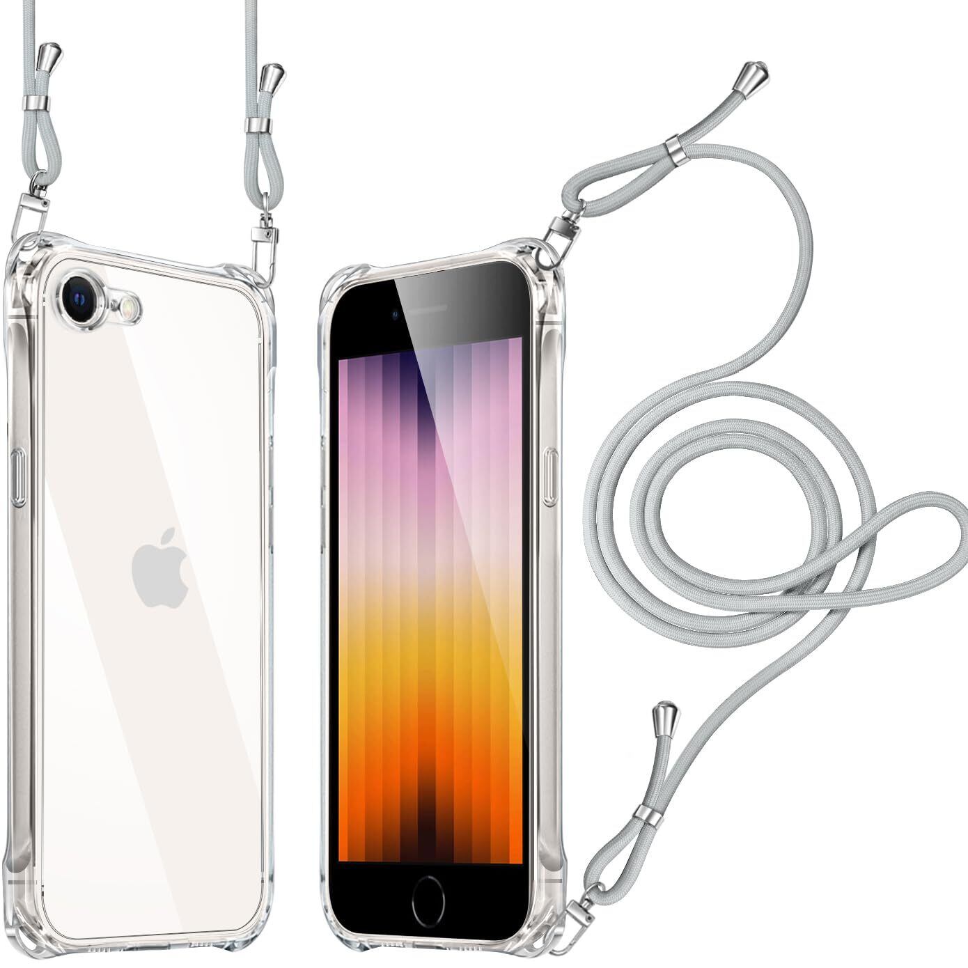 iPhone se 第3/2世代 iPhone8 iPhone7 ケース クリア ショルダー 耐衝撃 レンズ保護 肩掛け 首かけ 斜めがけ 縄掛け アイフォンse 3 / 2 / 7 / 8 カバー 調節可能な 透明 落下防止 縦/横 紛失防止 2WAY (グレー)