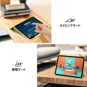蓋を折りスタンドできて、作業と動画視聴の二つの角度を調整するのに便利です。