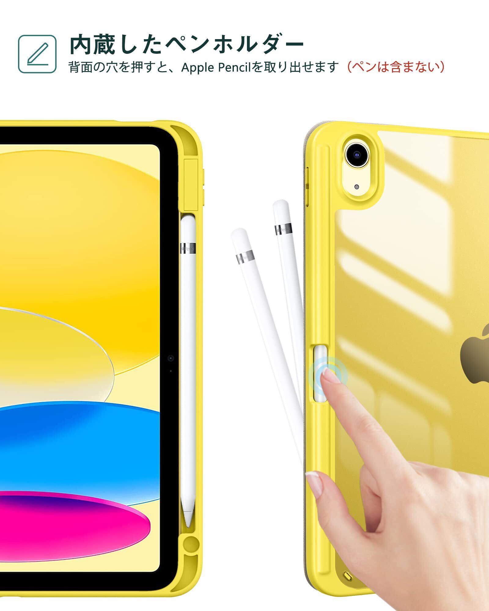 ProCase iPad 11世代/10世代 ケース iPad(A16)11インチ 2025/10.9インチ 2022通用 A2696 A2757 A2777 ペン収納 耐衝撃 三つ折り スタンド スマートカバー(イェロー)