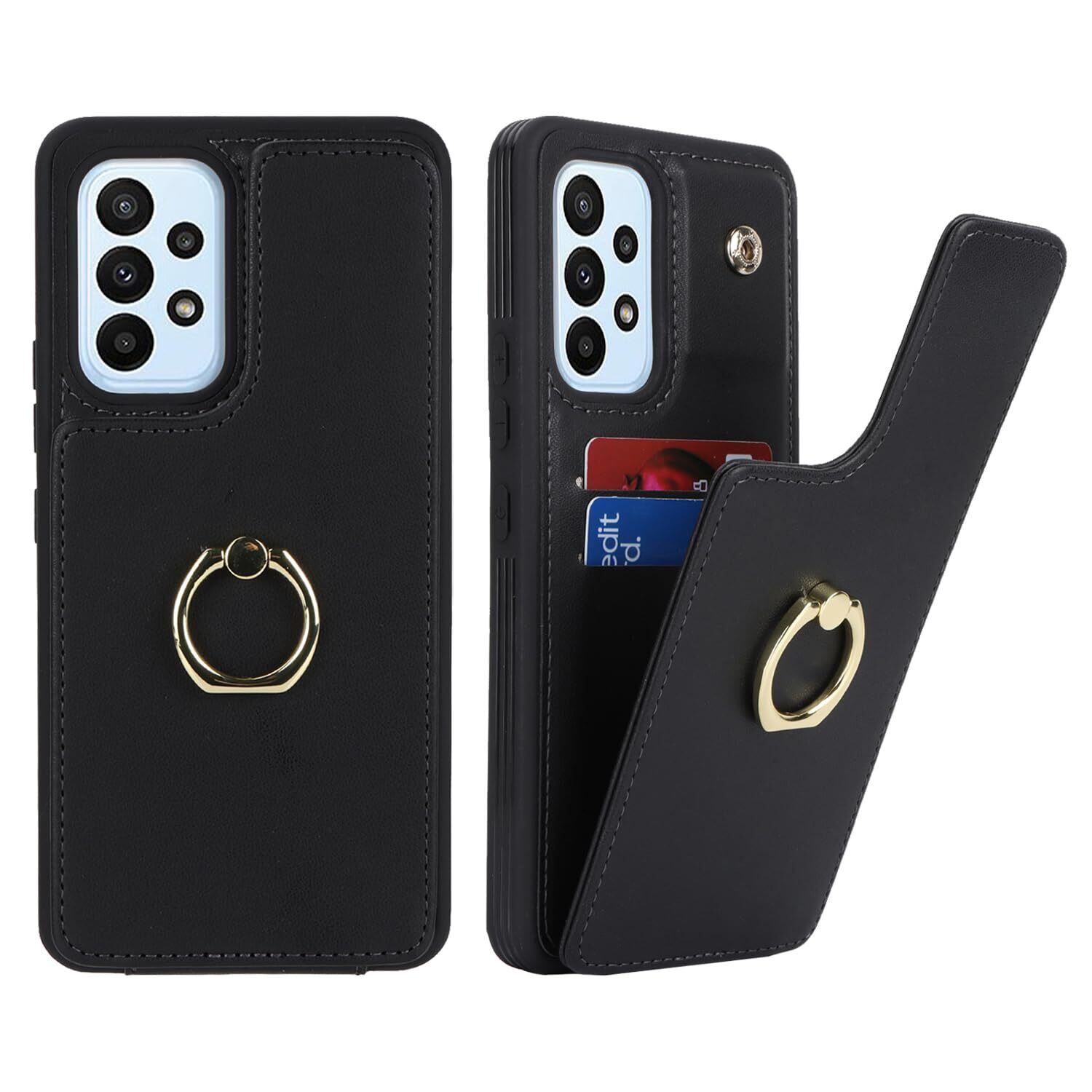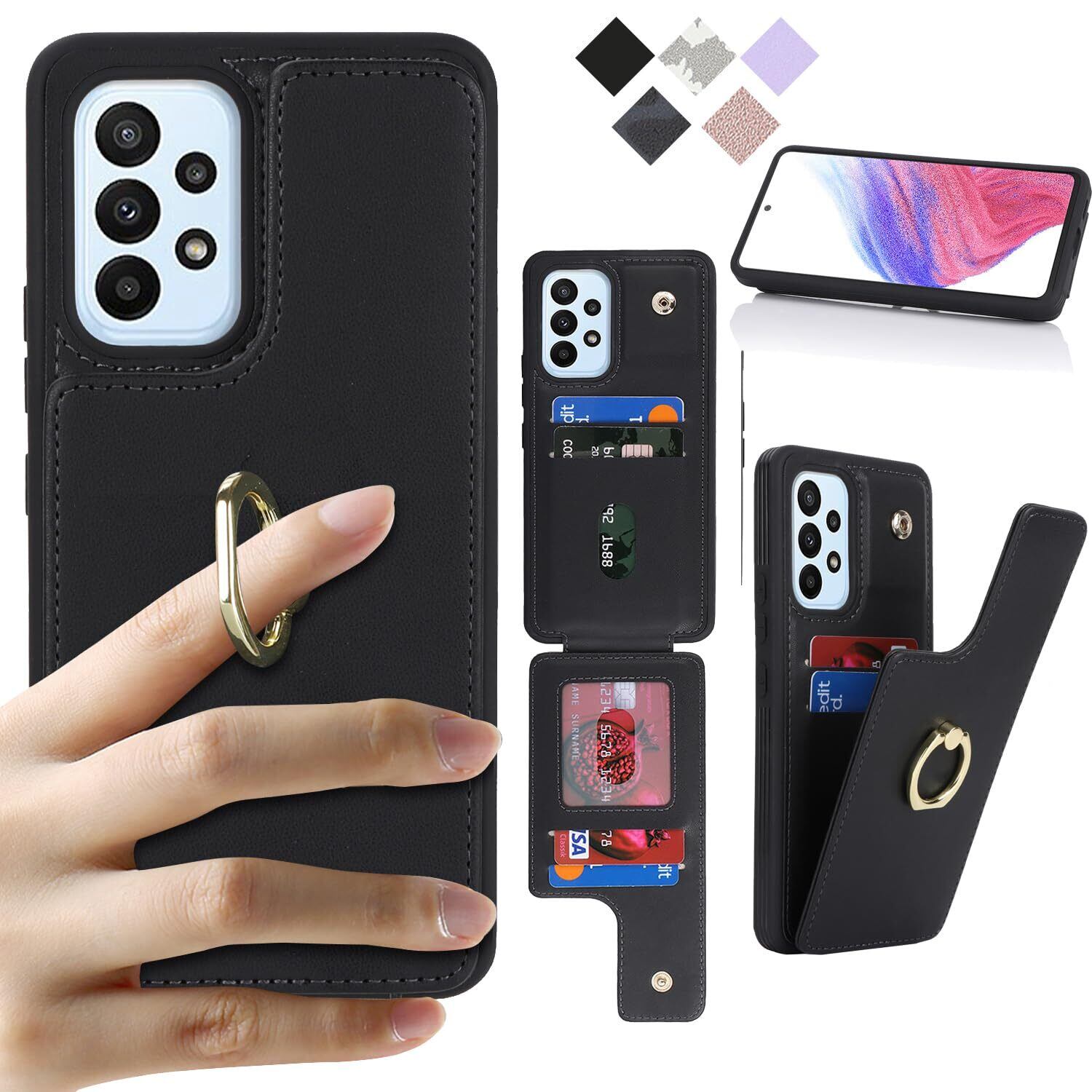 Cavor Galaxy A53 5G SC-53C SCG15 ケース 背面ポケット付きGalaxy A53 5G手帳型ケースSCG15ケースカードポケット【上下開】SCG15 ケース SC-53D 携帯ケース【RFID機能】Galaxy A53 5G 財布型ケースGalaxy A53 5G case 360°回転リング横置 軽量 免許証とクレジットカードQi急速充電-ブラック