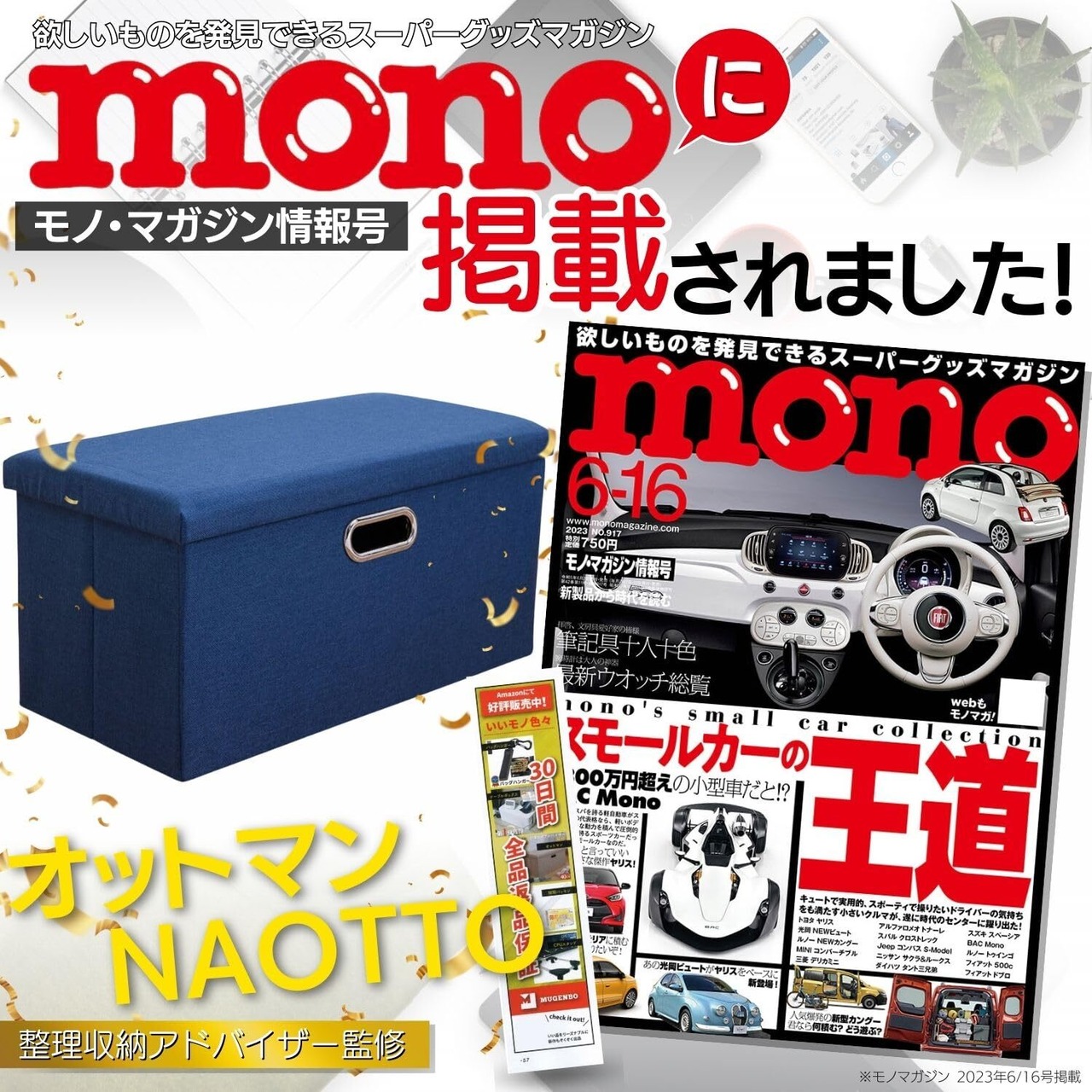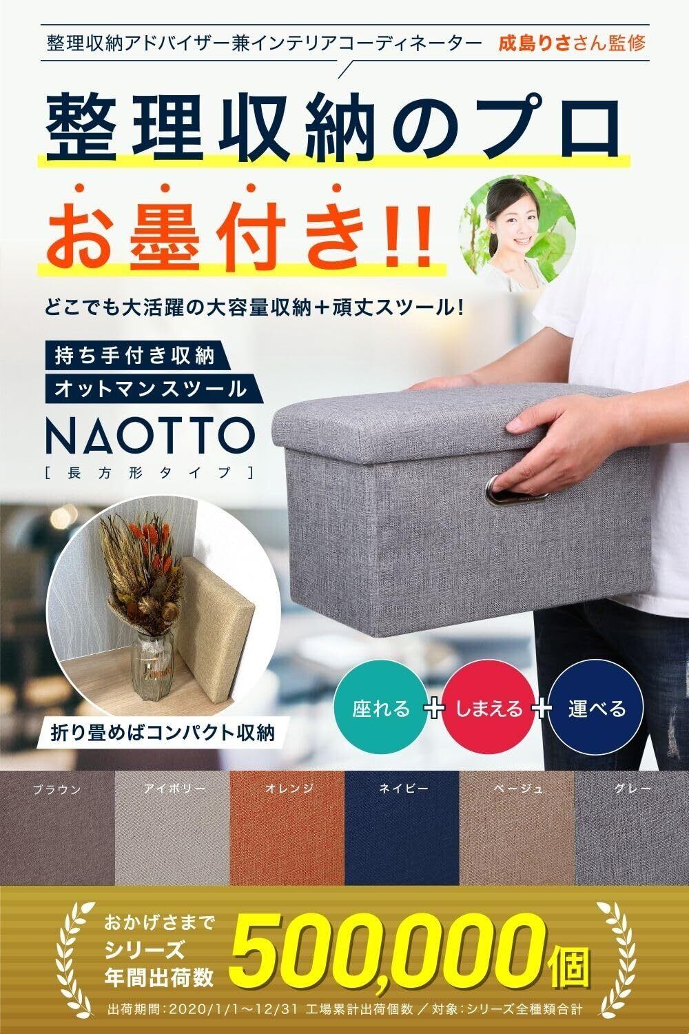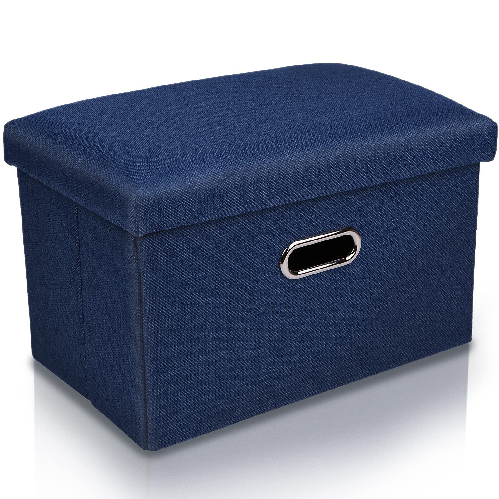 オットマン スツール 【整理収納のプロも推薦!】 折りたたみ式 耐荷重120kg 収納 足置き 椅子 ボックス 持ち運びに便利 フットレスト ふた付き 取っ手付き mugenbo 日本ブランド (ネイビー, 40×25×25)