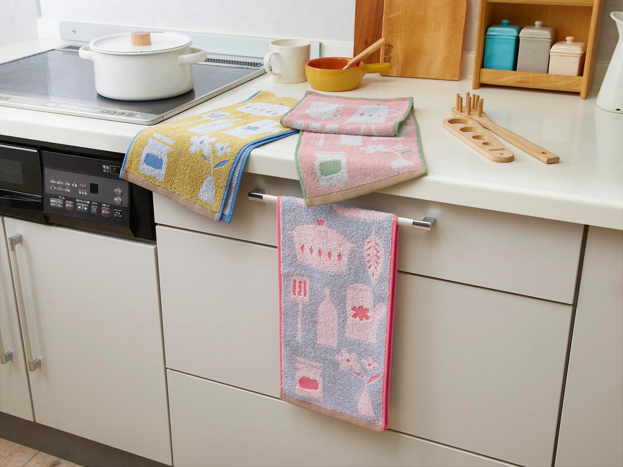 Kosugizen スリムフェイスタオル スリムなおてふきタオル キッチン 3色各1枚入 20×80㎝ タオルハンガーにちょうど良い 便利なサイズ 3枚セット ZGTF-1802-3
