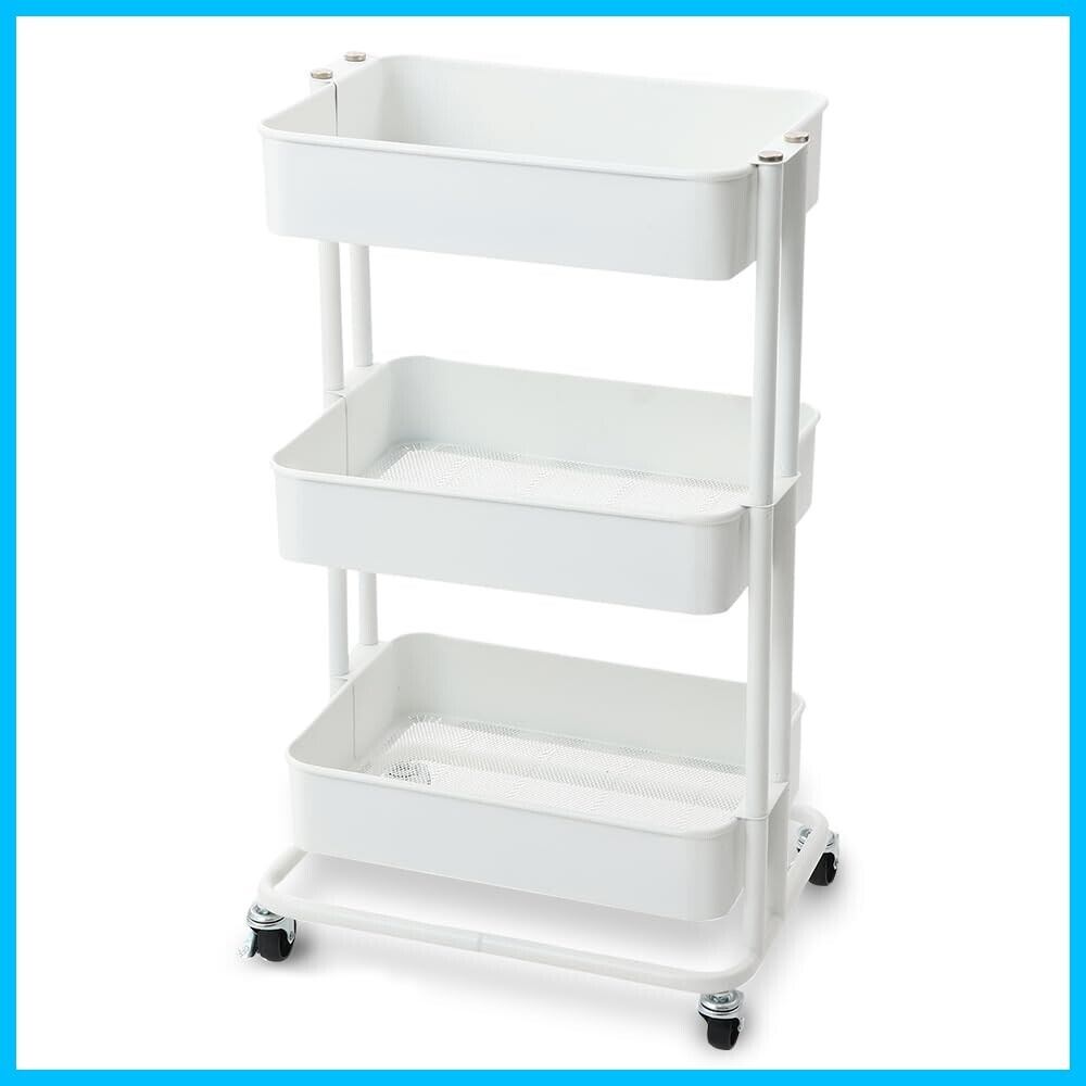 【取り出しやすくリニューアル! 】アイリスプラザ キッチンワゴン ワゴン 調味料ラック バスケットラック 収納ワゴン 3段 キャスター付 幅44.5×奥行35×高さ78cm ホワイト KW-L001