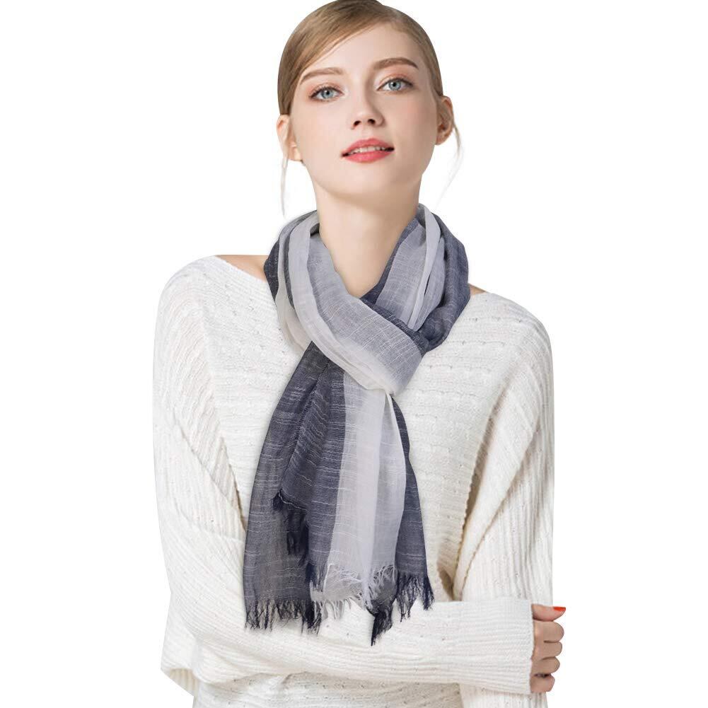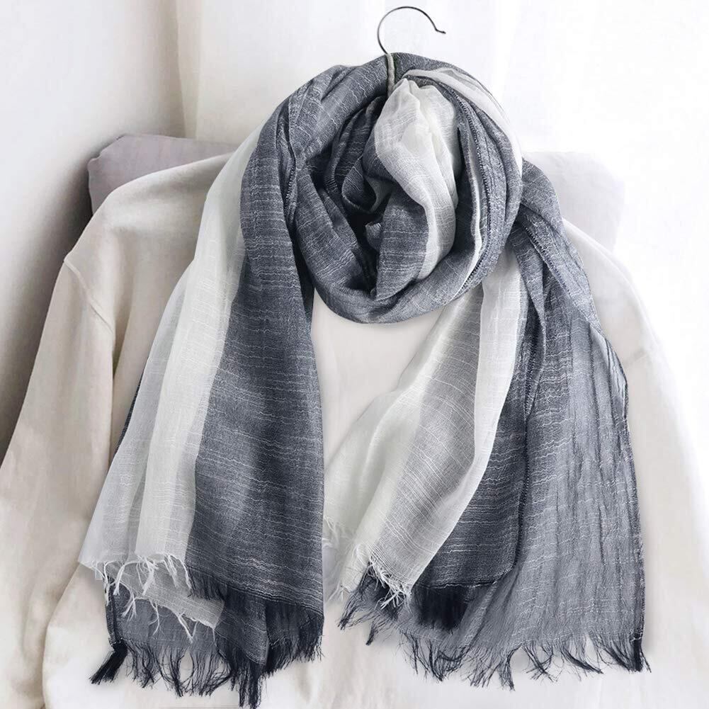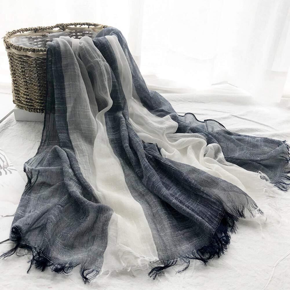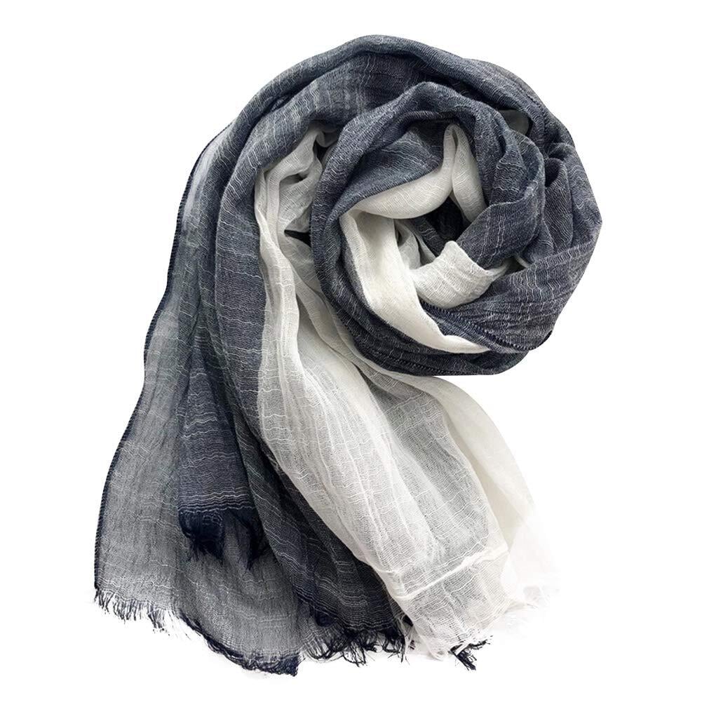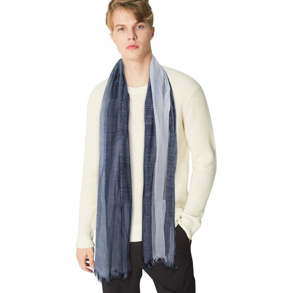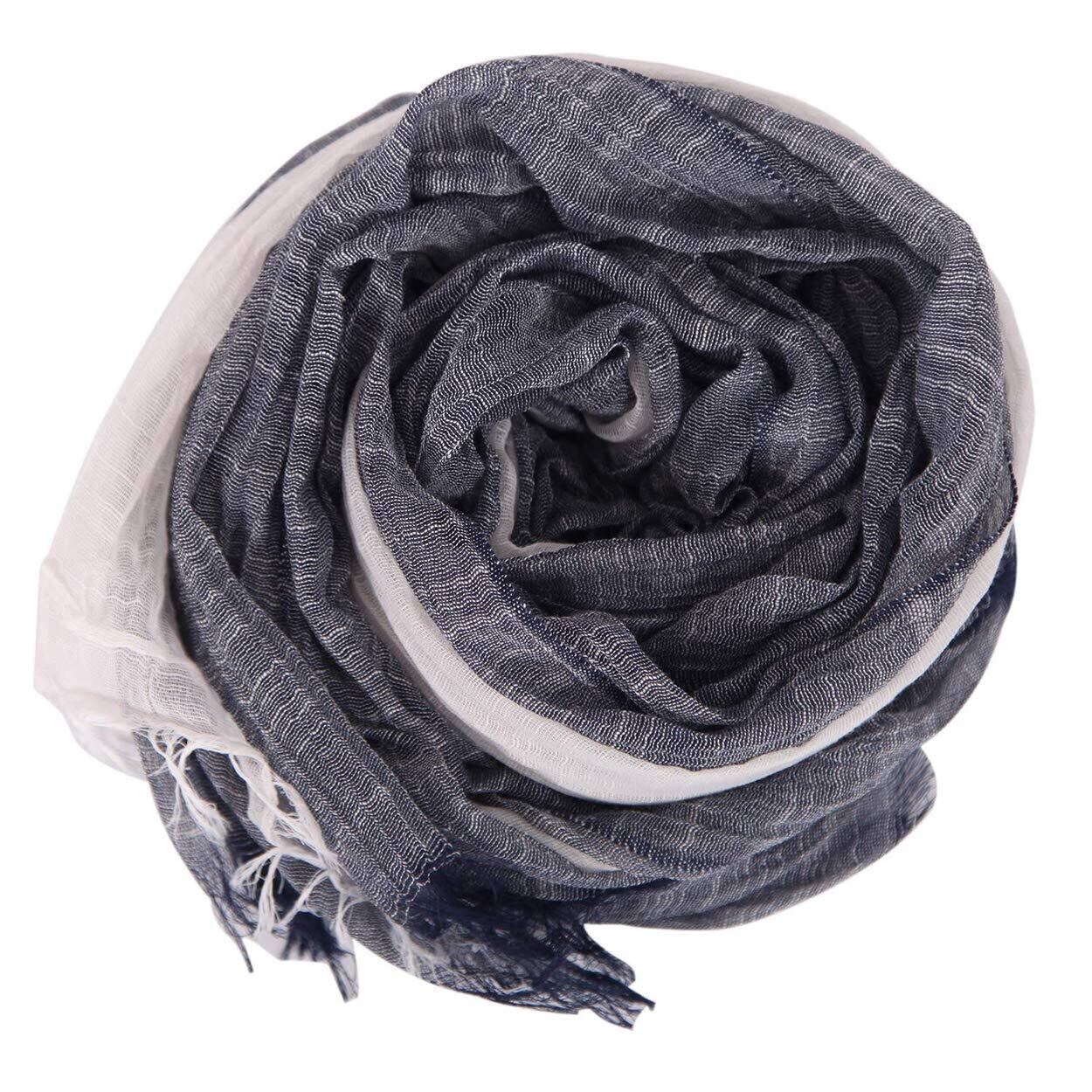 [DAMILY] ストール メンズ 大判 スカーフ 春秋用 薄手 綿 ガーゼ マフラー 爽やか 春夏 日焼け止めストール UVカット&冷房対策 ショール 男性用 ロングスカーフ カジュアル グラデーションデザイン 男女兼用 母の日プレゼント (ダークブルーホワイト)
