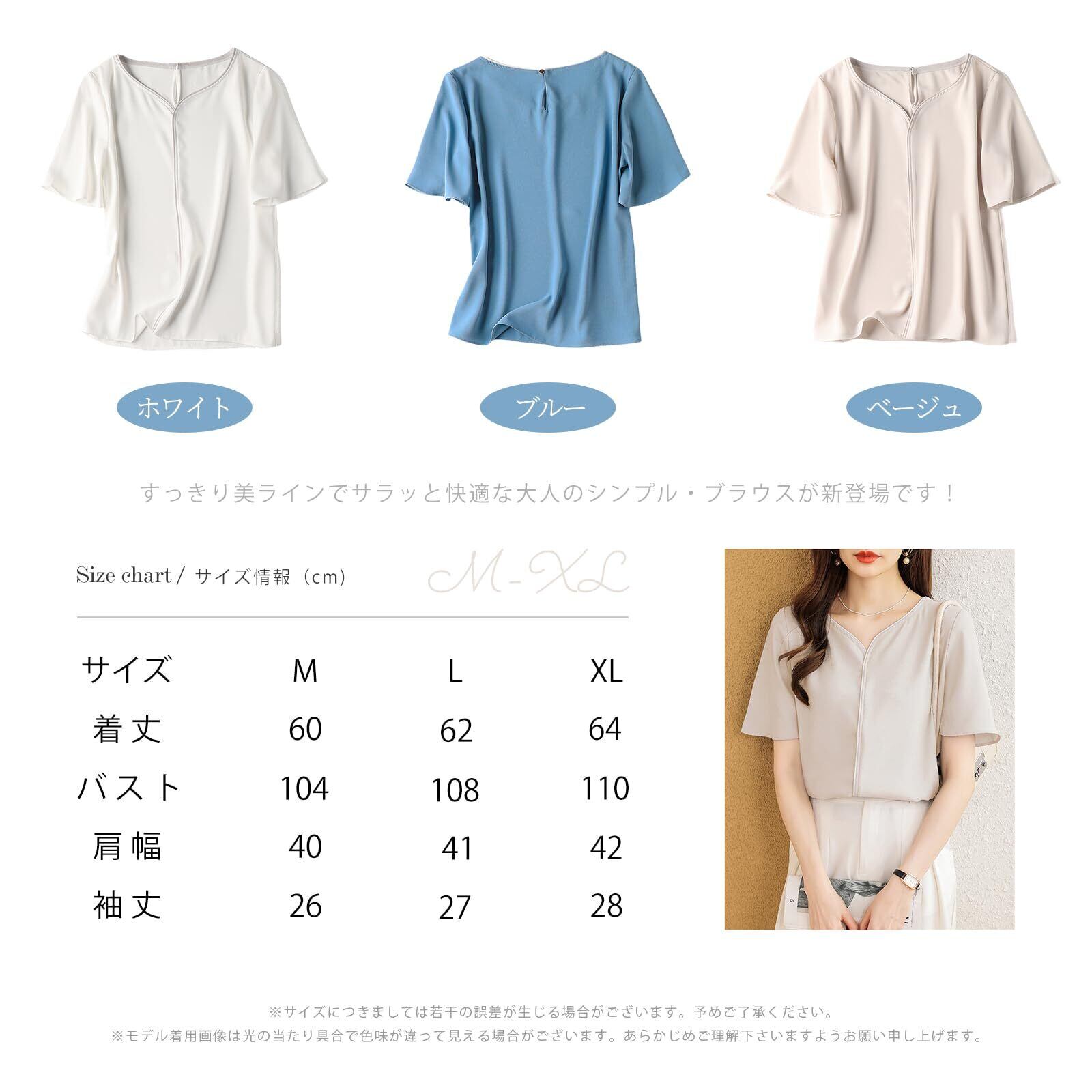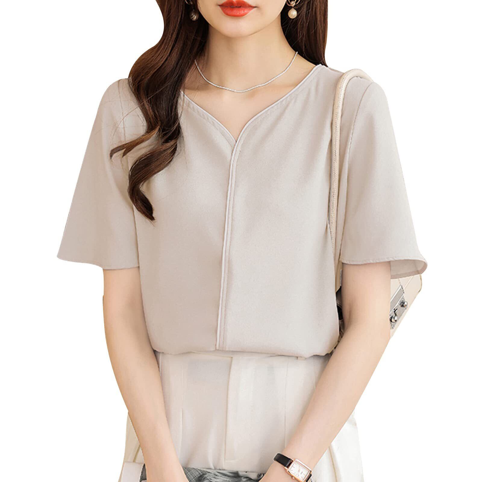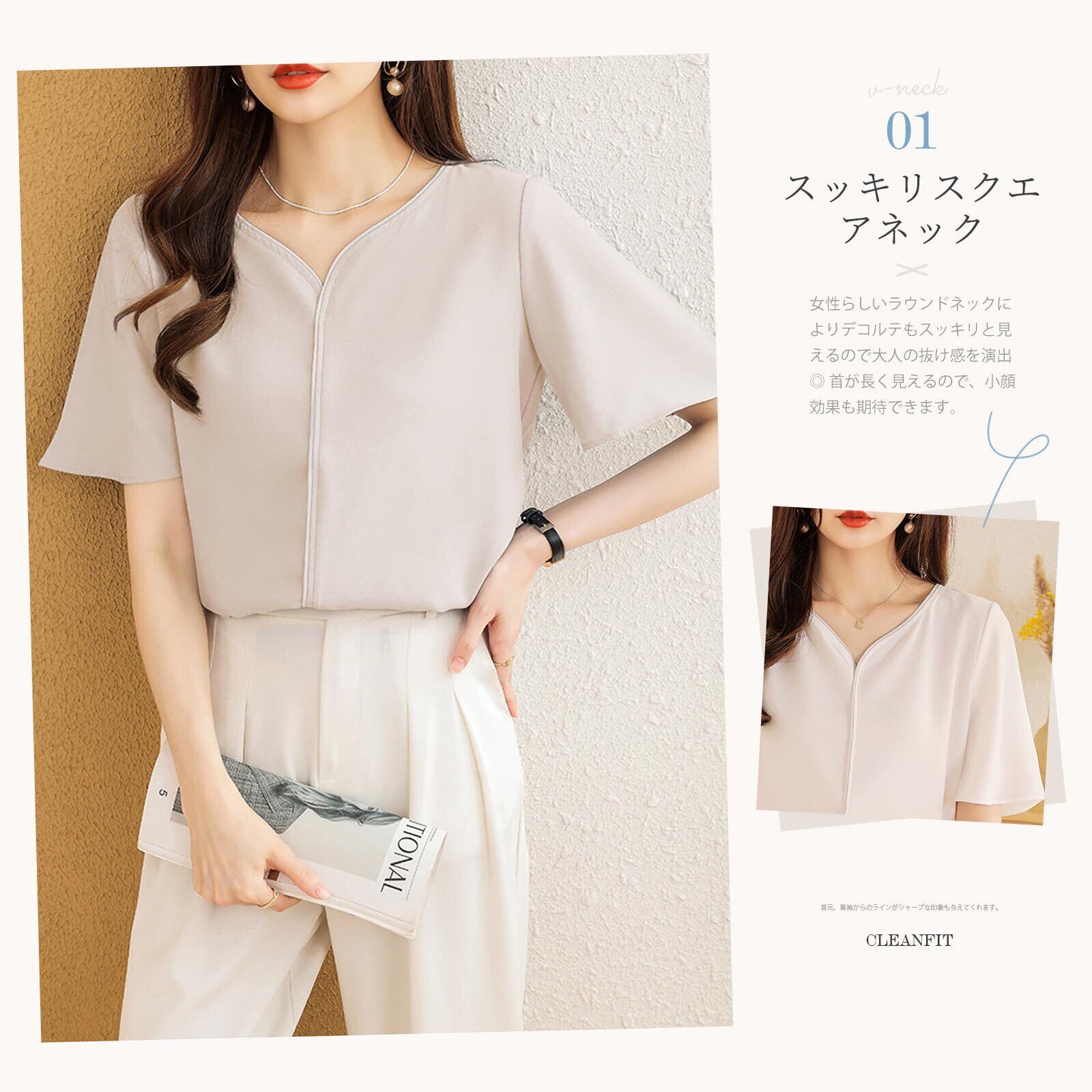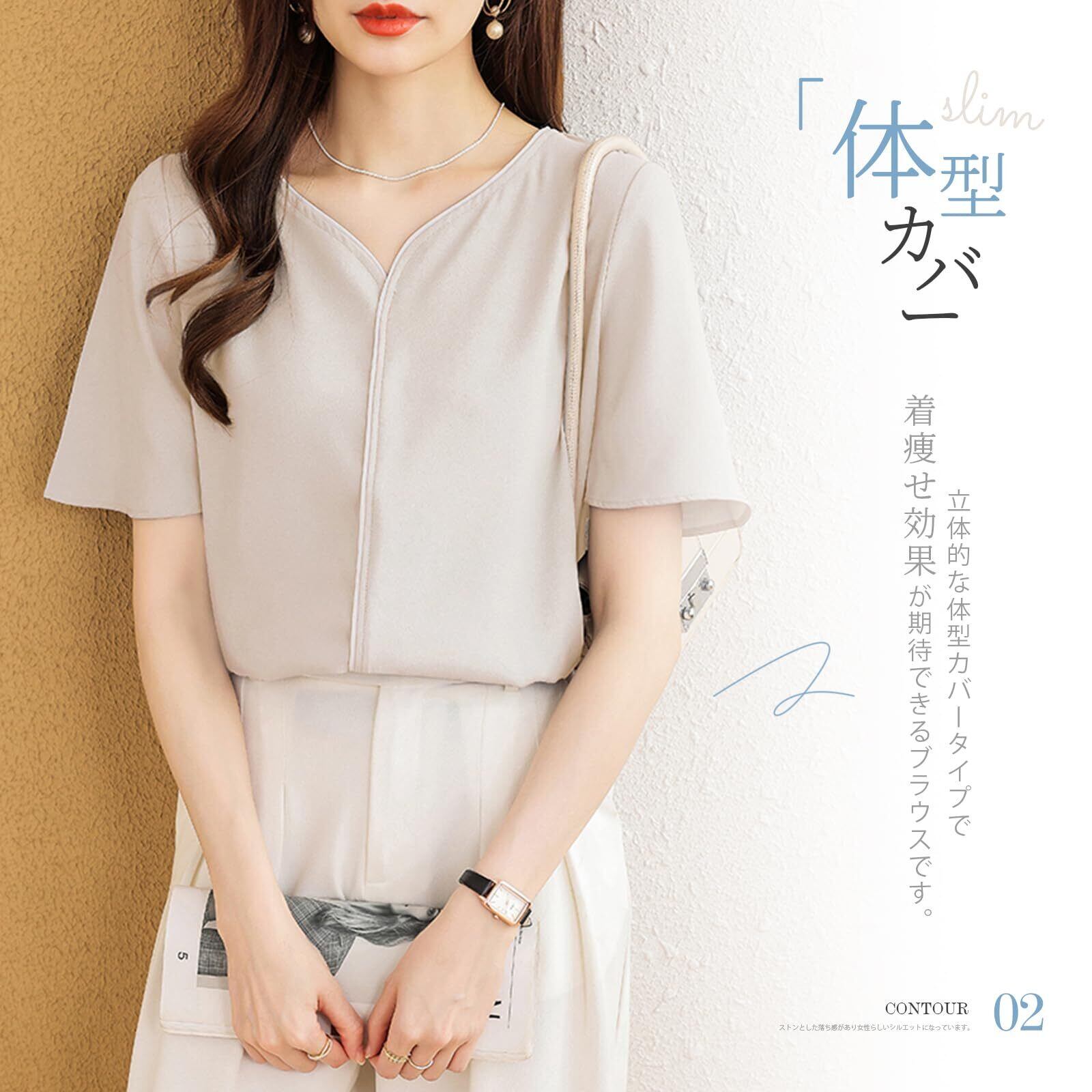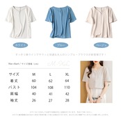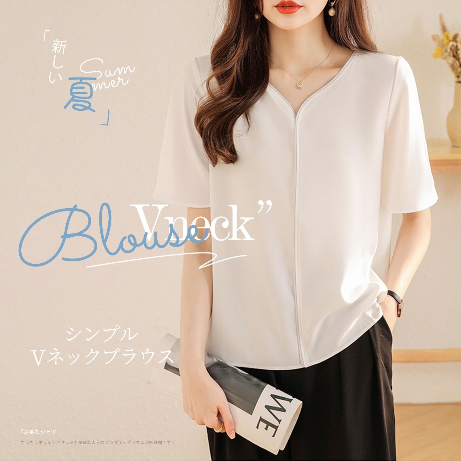 [MEME XTRA] ブラウス レディース 半袖 トップス Vネック シャツ サラサラ プルオーバー 半袖ブラウス シンプル ゆったり 夏服 涼しい シンプル 大きいサイズ カジュアル おしゃれ 通勤 普段着 夏春