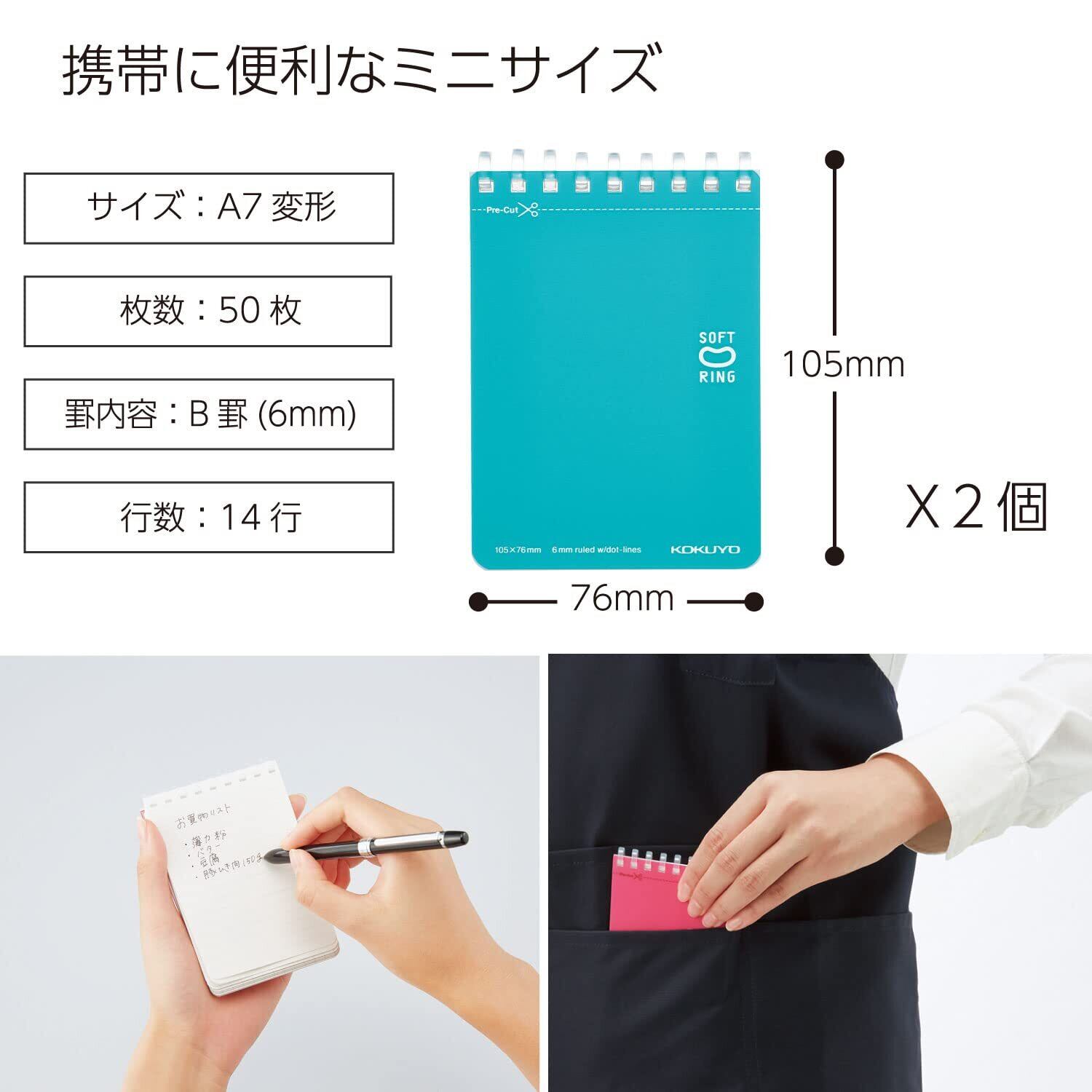 コクヨ(KOKUYO) メモ帳 ソフトリング ドット入りB罫 A7 50枚 2冊セット 青 メ-SV371BT-LBX2SET